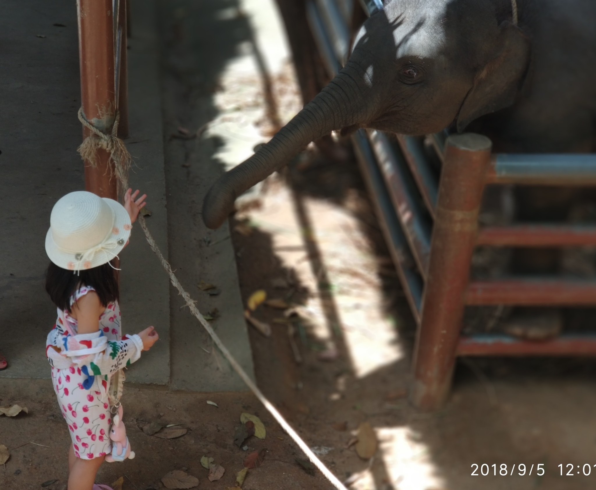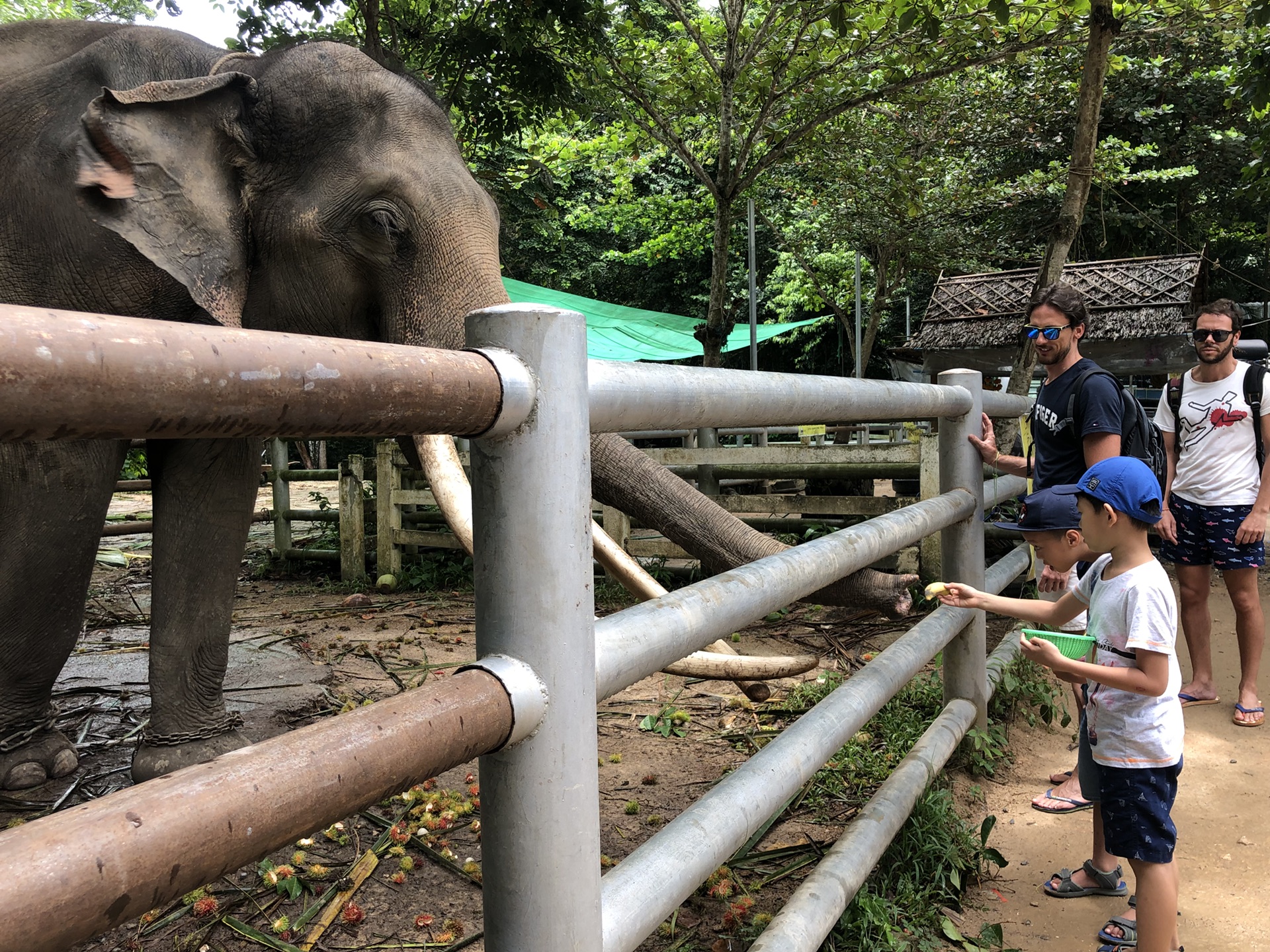 公园里可以骑大象,对于骑大象这件事,大家其实内心是抗拒的,没有杀戮就没有伤害,但是为了让娃们体会下骑大象的感觉,只好带着两个娃短暂的感受下,我们骑的大象是一头小象,很调皮,吃树叶、走水洼、喷水,貌似挺开心。就是大象背上实在不太好坐,大象一脚高一脚低,非常颠簸,我一手抱着一个娃,很怕他们掉下去。还是喂大象好玩,大象很灵活的用鼻孔吸住食物送到嘴里,开心的时候,还会有节奏的摆动身体。