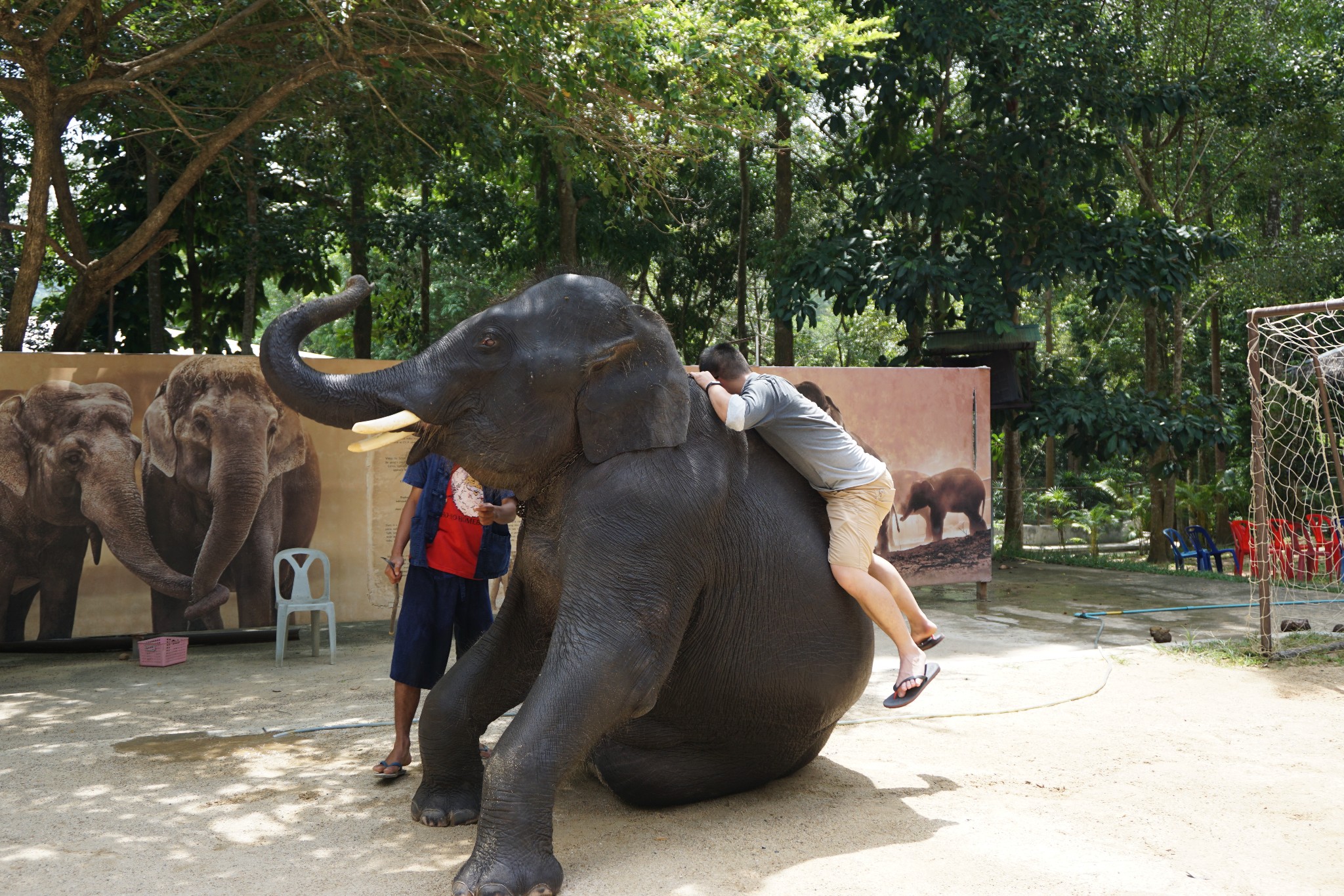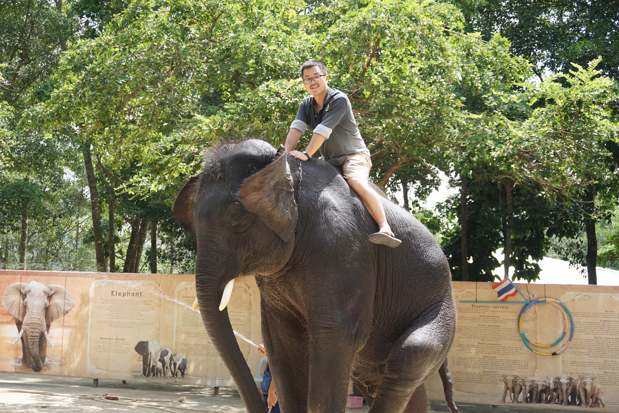 苏梅纳芒探险公园在海岛南部,经过拉迈海滩再往南走就可以看见标志;看介绍说这里的大象是从泰北运过来,所以价格比清迈、Pai县明显贵上一圈。因为春节假期的原因,没有坐上大象,但是也算是带爸妈近距离观看了大象,是一次有趣的体验。