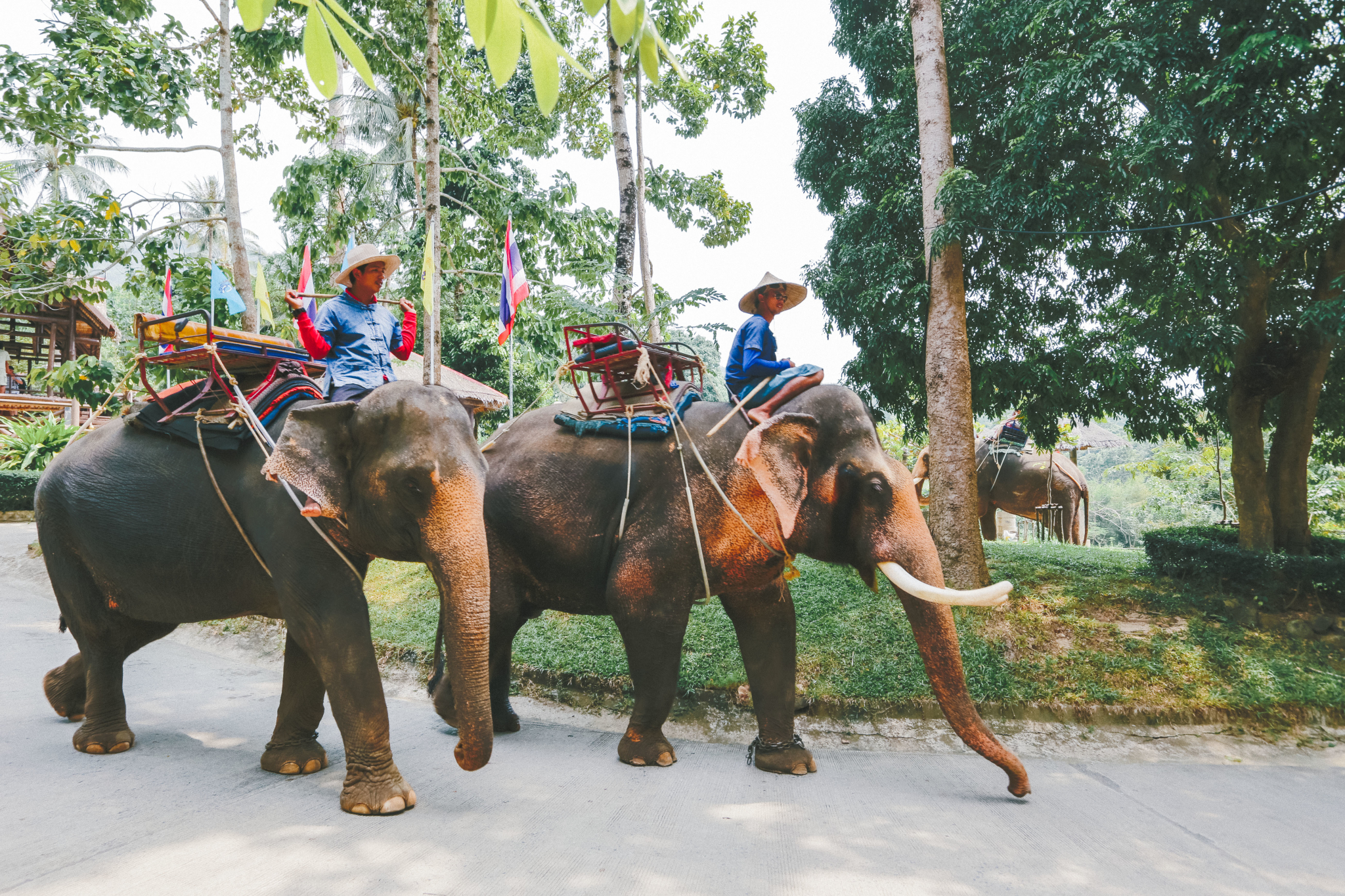 有骑大象和动物表演,我们报了一个骑大象,有双条车回来接送,摩托就放这家旅行社了。骑大象半个小时是700B/人。