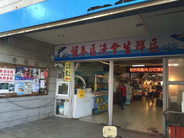 渔港边一栋魟鱼造型的建筑物,便是恒春区渔会生鲜市场,大老远吸引着游人的目光。渔会大楼分两个建筑:一边是鱼类制品,卖鱼干虾酱什么的;另一边是海鲜大排档,这的店都是渔家自己开的,现捞现卖。“辉哥”和“阿兴”是最火的两家店,因为店面都不大,食客又多,所以一般都需要等位。