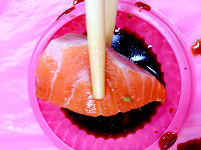 这里品尝了三文鱼,价格特别便宜,许多本地人也来吃。