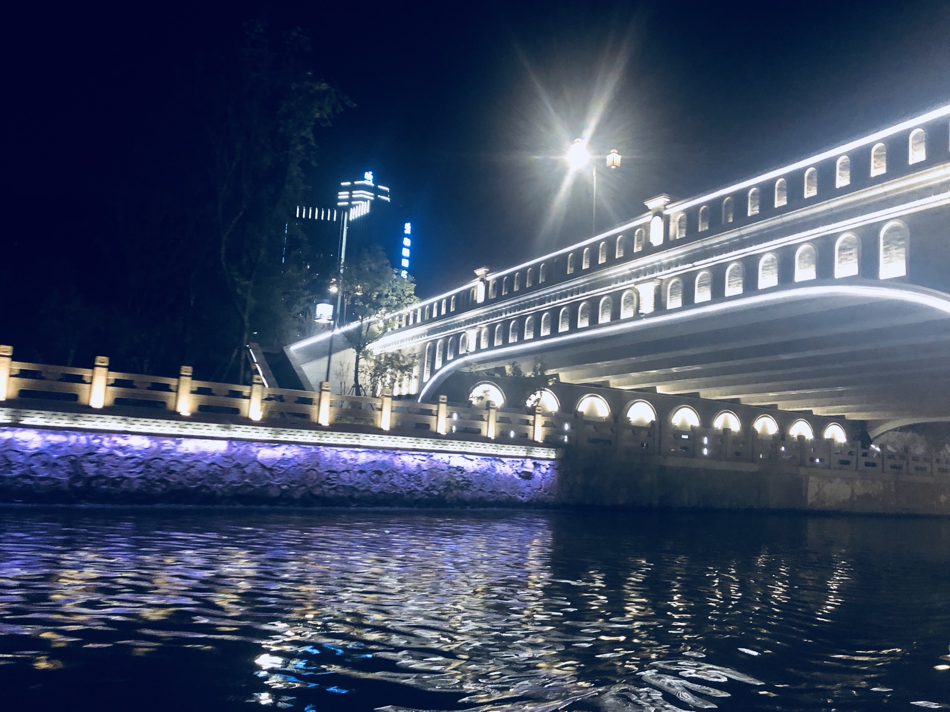 扬州的游船游览路线真的很赞。强烈建议大家在傍晚的时候去坐,上船的时候天还有点亮,渐渐地一路而下,天色渐渐变暗,突然周围一片霓虹,霓虹闪烁之下的运河格外美丽。有河的地方就会有桥,扬州的桥就是这座城市的名片,各有各的特色。伴着岸边前年吟诵的古诗,跟着古诗词去旅行,这便是扬州
