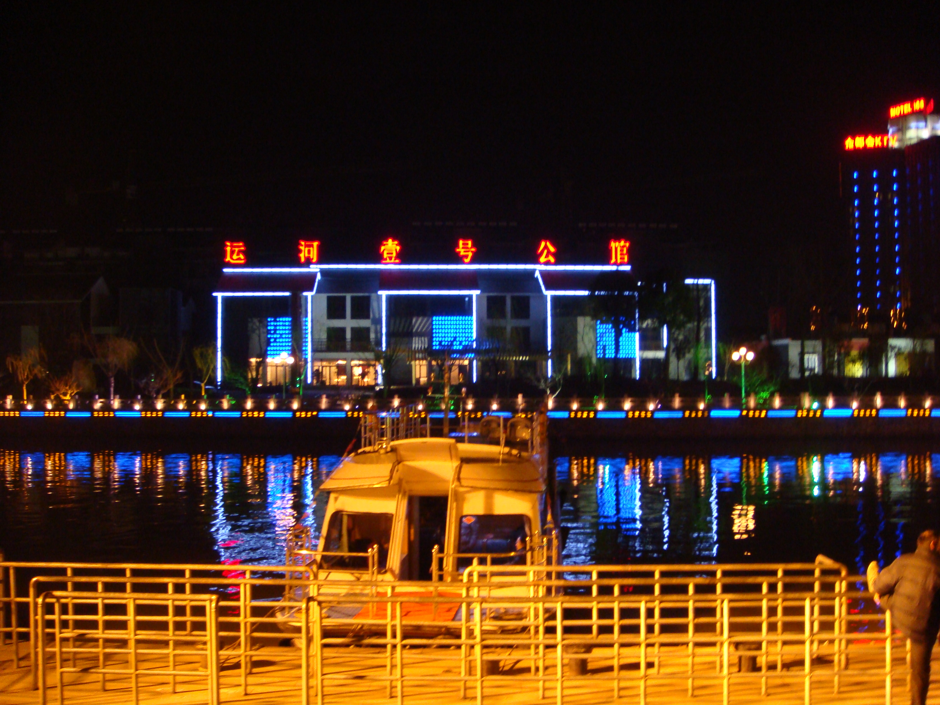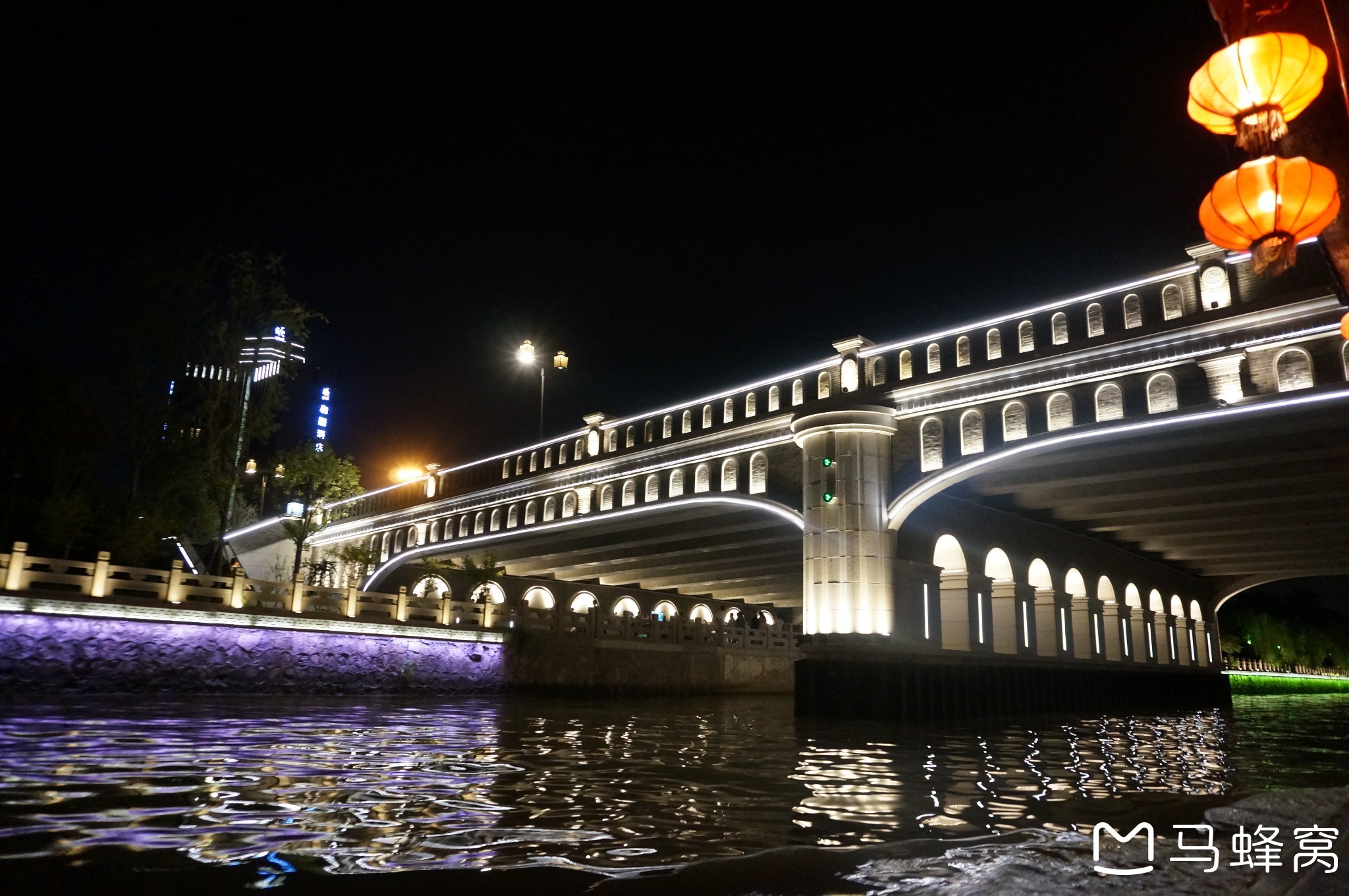 游船其实不比步行更有意趣,吃罢晚饭运河边散散步聊聊天,看看夜景中的运河还是很惬意的