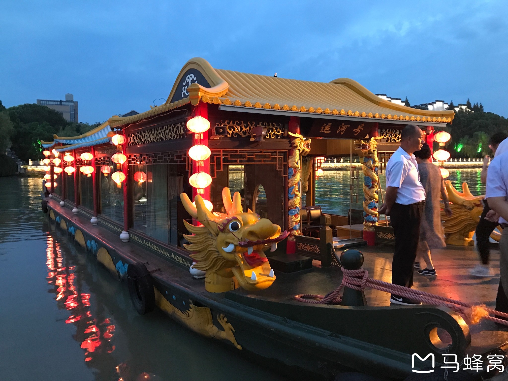 京杭大运河坐船有两个码头,一般人都选择从离东关街较近的便益门码头出发,因为之前在攻略上看说南门码头出发人比较少,所以我们选择打车到这个码头。孩子不用买票,貌似这个船是整点出发的,我们坐的是晚上8点的班次,整个船上也就10人左右。在夜晚的游船上看看运河两岸的风景确实觉得很美,不过一会也就审美疲劳了。