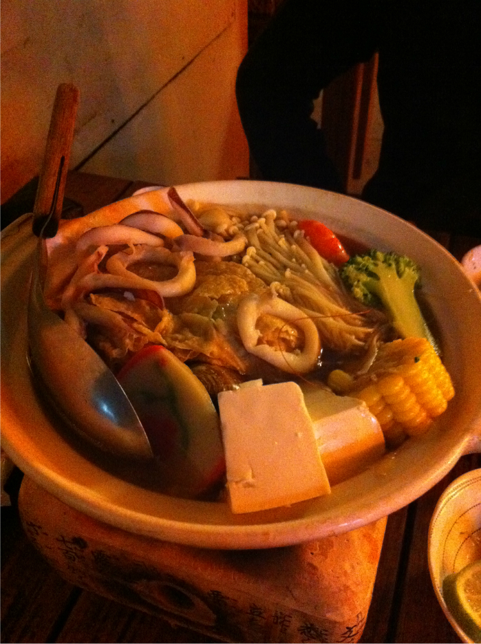港町十三番地的餐厅~日式哒,火锅非常好吃~烤物也不错。唯一让我觉得感觉很奇妙的是,这一间坐落在两条路交会的地方,是个半露天的餐厅~不敢想下雨的时候他们怎么办……哈哈反正呢,日式的餐厅吃出了那么点儿串儿啤的感觉吧!