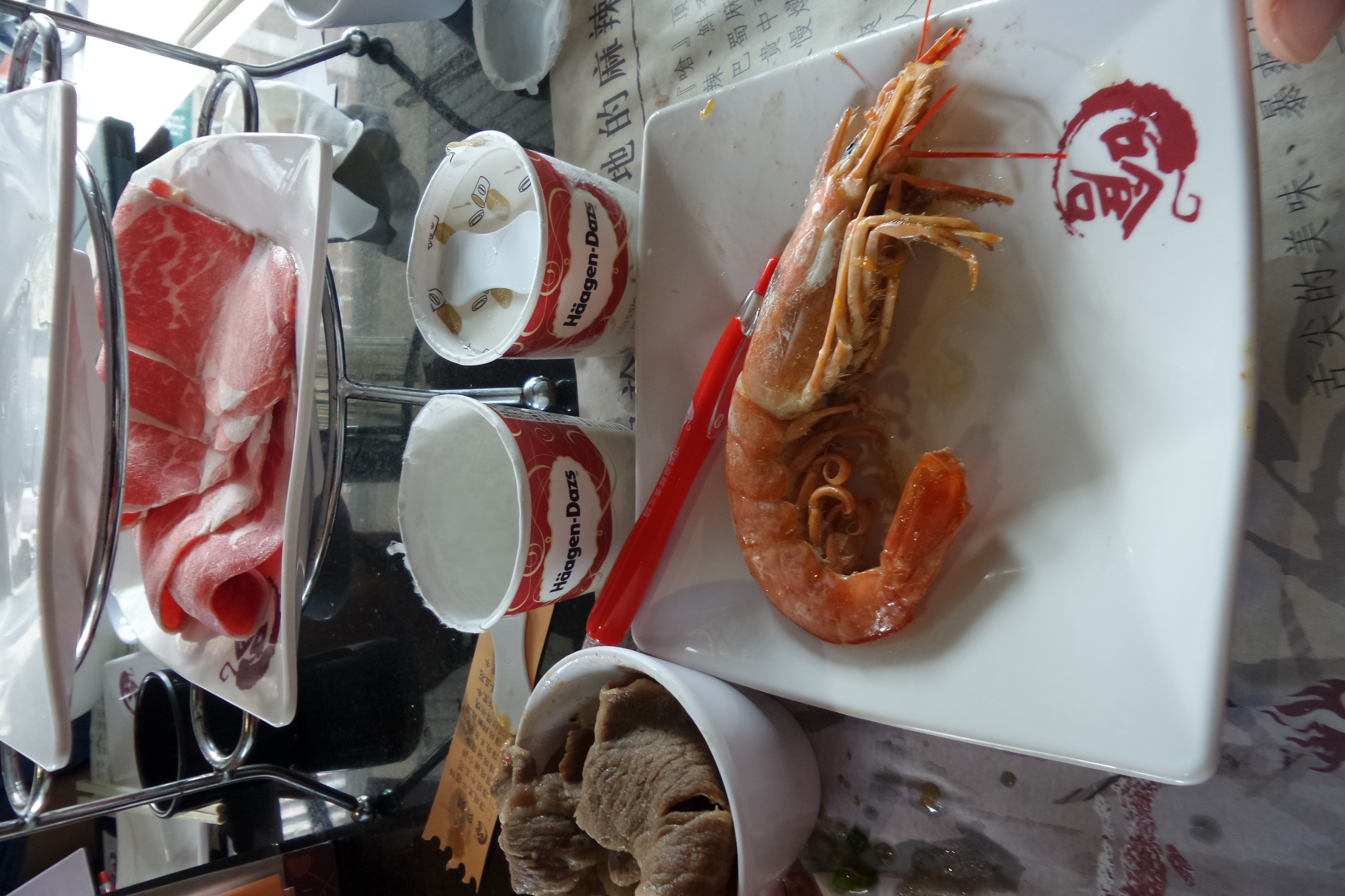 小蒙牛所有肉类海鲜蔬菜水果甜品冰淇淋都是无限吃,最后我们四个人吃了十盘牛羊肉,54只大虾,外加N多干贝、蛤蜊、鲍鱼、鱼皮、花枝丸、牛肚、玉米、山药、大陆妹、豆制品等等...饭后甜品的小蛋糕各样要了一个,有提拉米苏黑森林什么的,水果是一份四片,有西瓜、哈密瓜、凤梨和芭乐,还吃完了7盒哈根达斯...从一点二十吃到四点,几个人拍着滚圆的肚皮直呼过瘾,估计人家台湾人没见过我们这么能吃不要脸的吧,略不好意思,不过真的是过这村没这店啊,比如现在我就好想再吃一次可惜只能做做白日梦了。这家店在其他城市也有,如果有机会的话一定要去一次,价钱是一个人400多NT吧,太值了~最后要非常隆重的推荐一家自助火锅,小蒙牛顶级麻辣养生锅。我们是在台中文心路那家吃的,一点去还等了二十分钟才有位置。要的鸳鸯锅,他家没有蘸料因为汤头已足够好,麻辣和养生锅底都特别特别够味儿。