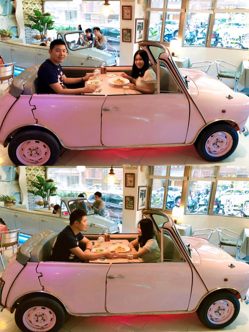 沒想到近20年過去了,這家店居然是真實存在的!到了台北後抱著試一試的心態預約了杉菜道明寺約會的粉色車車(看網上有人說提前半年預約我真的很忐忑啊!)結果被我預約到了兩天後的中午12點!簡直想抱著老公轉圈圈~