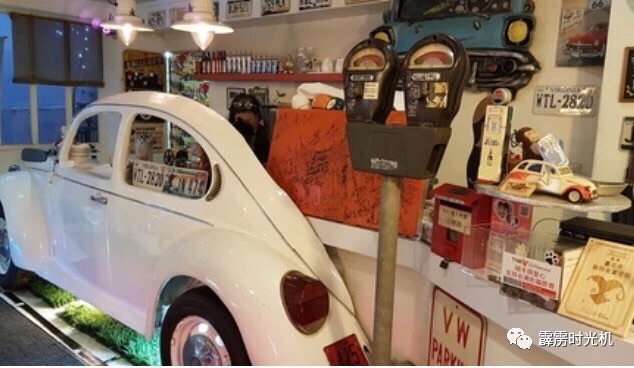 店裡停放的整車就是杉菜和道明寺約會的Mini Austin,其他還有Volkswagen Beetle,1963 Cadillac Series 6200 Coupe和1955 Chevrolet Bel AIr,顏色都好清新呀!