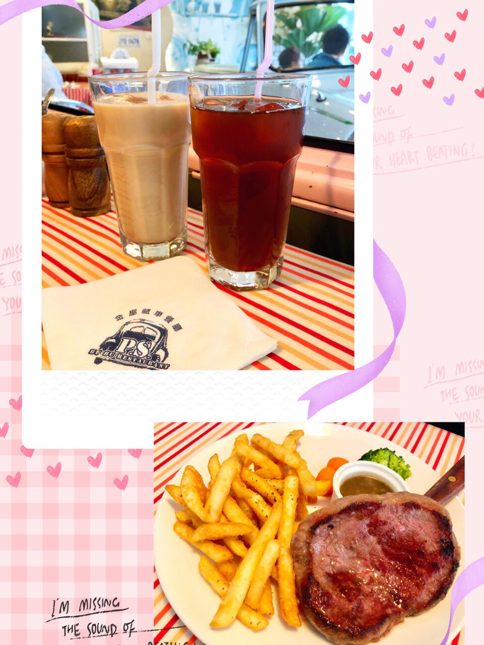 在我上初一的時候第一次看流星花園,雖然那時候還沒有被這部戲圈粉,但卻被這個餐廳圈粉了!第12集里,杉菜帶道明寺來這個有趣的地方吃冰淇淋,當時青春期的我就幻想著將來能和自己的另一半來這樣的餐廳坐在汽車里吃飯。沒想到近20年過去了,這家店居然是真實存在的!到了台北後抱著試一試的心態預約了杉菜道明寺約會的粉色車車(看網上有人說提前半年預約我真的很忐忑啊!)結果被我預約到了兩天後的中午12點!簡直想抱著老公轉圈圈~當天十點多從我們住的酒店(靠近永康街)出發!都不用換線路哈,直接坐上開往淡水方向的捷運就好,芝山站下來,打車120台幣就抵達目的地。到得比較早,但還沒開門,就去周邊逛逛,發現這裡是高檔住宅區,還有個公園,感受下附近的小清新後就來這裡用餐。整個店還是流星花園裡的樣子,而且這家店完全沒有在消費流星花園這部火遍亞洲的戲,店裡沒有任何和流星花園相關的元素,牛到不行哈!個人覺得店裡主打的就是可以帶寵物來用餐哈~我們到的時候只有我們兩個人,可是我害羞,不好意思狂拍照,現在想想後悔莫及~店裡停放的整車就是杉菜和道明寺約會的Mini Austin,其他還有Volkswagen Beetle,1963 Cadillac Series 6200 Coupe和1955 Chevrolet Bel AIr,顏色都好清新呀!看到粉色車車後,立馬打開車門入座,雖然這輛車車的椅子和玻璃已經縫縫補補又三年,卻不影響它的美貌和價值。坐了不一會兒就來了日本的一家四口,看樣子他們也想坐這輛車,但是被我們捷足先登哈,只能坐薄荷綠的車,看看小朋友們的滿足樣~接著我們就可是點單了,因為這個座位有低消,其實就是兩個人點兩個set就好啦,選擇了480和680的,680的就多了焗海螺,主食選擇的範圍也多一些。老公對這家店的評價是食物要麼特別好吃,要麼特別難吃!南瓜湯和牛排配的薯條以及香辣義式雞肉面非常好吃,其他就一般般啦~甜品本來點了一個布朗尼一個香蕉蛋糕的,後來把布朗尼換成了香草冰淇淋,因為杉菜就是來這裡吃冰淇淋的呀[吐舌]不過來這裡是吃環境的,能吃到這樣的美食已經超出心裡預期了!店主會和我們聊天,店裡的狗狗叫Aloha,我說我們因為蜜月去了夏威夷所以也想養條柴犬叫Aloha的,店主很驚訝地說天哪!你們都結婚啦!我以為你們是20出頭的小情侶來店裡用餐……哈哈哈……