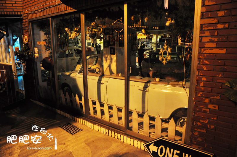 找到《流星花园》里杉菜和道明寺约会的汽车主题餐厅——金屋藏车,也叫P.S. Bu Bu 由于要去的店太多,网上地址的错误,跑错了地址,搭地铁坐到芝山站,再打车10分钟左右,110台币,22点才赶到这家店,已经打烊,善良的老板娘开门让我们拍照。台北市士林區中山北路七段140巷1號餐厅里装饰这各种汽车配件,餐桌则都由汽车改装好多明星来过这里。拍照时,和老板娘闲聊,她说大陆客很少来这里,也奇怪我怎么找到这里