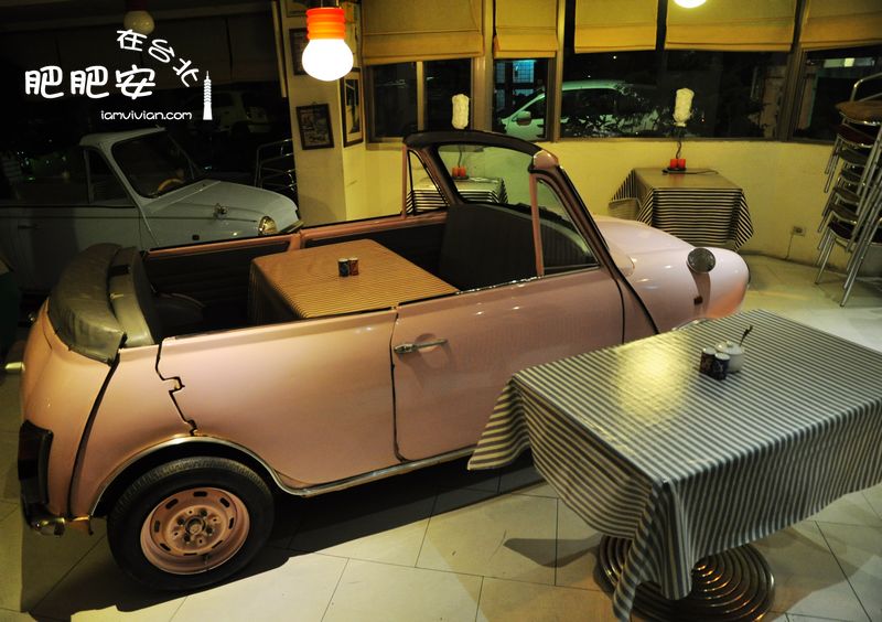 找到《流星花园》里杉菜和道明寺约会的汽车主题餐厅——金屋藏车,也叫P.S. Bu Bu 由于要去的店太多,网上地址的错误,跑错了地址,搭地铁坐到芝山站,再打车10分钟左右,110台币,22点才赶到这家店,已经打烊,善良的老板娘开门让我们拍照。台北市士林區中山北路七段140巷1號