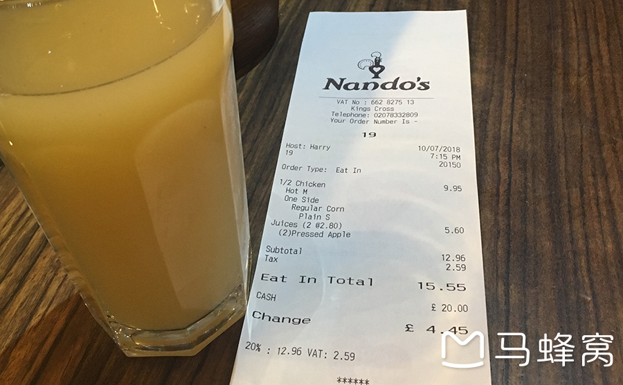 说一下,nando的东西建议你选择takeaway,堂食会收10-15%不等的服务费,那个钱没必要给,毕竟伦敦东西贵,留着去超市买零食也好啊~