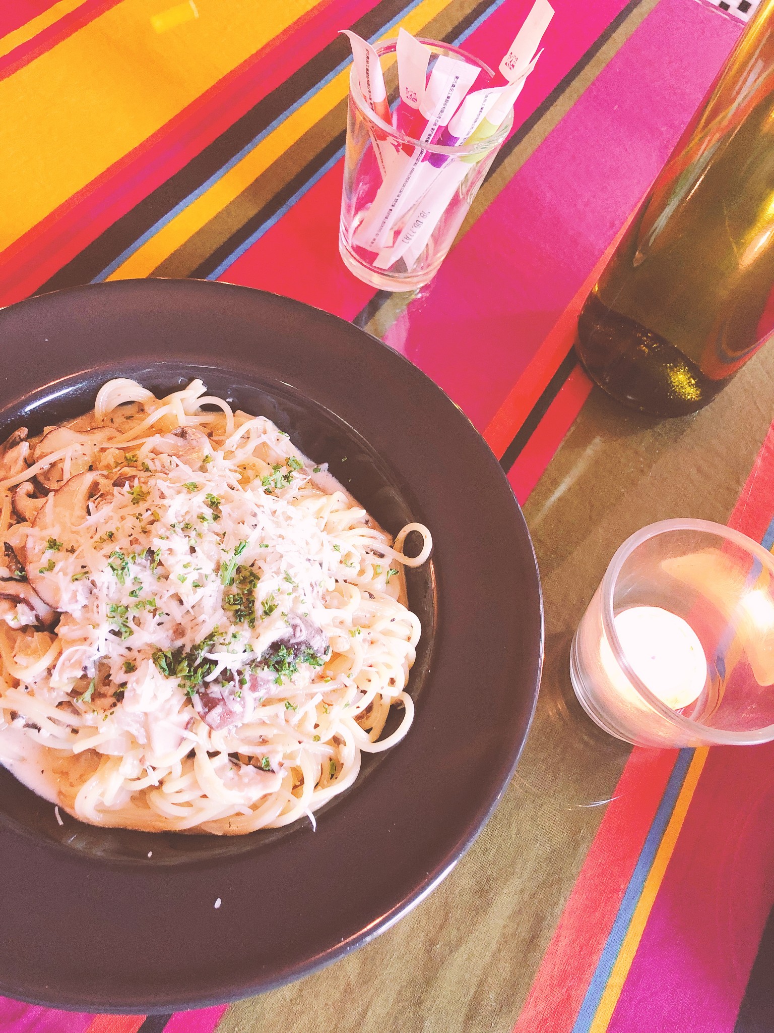 点了松露芝士蘑菇意面和海鲜饭,本是随意去的,味道却令人很惊喜,海鲜特别新鲜,松露芝士很香浓,奶茶也好喝。