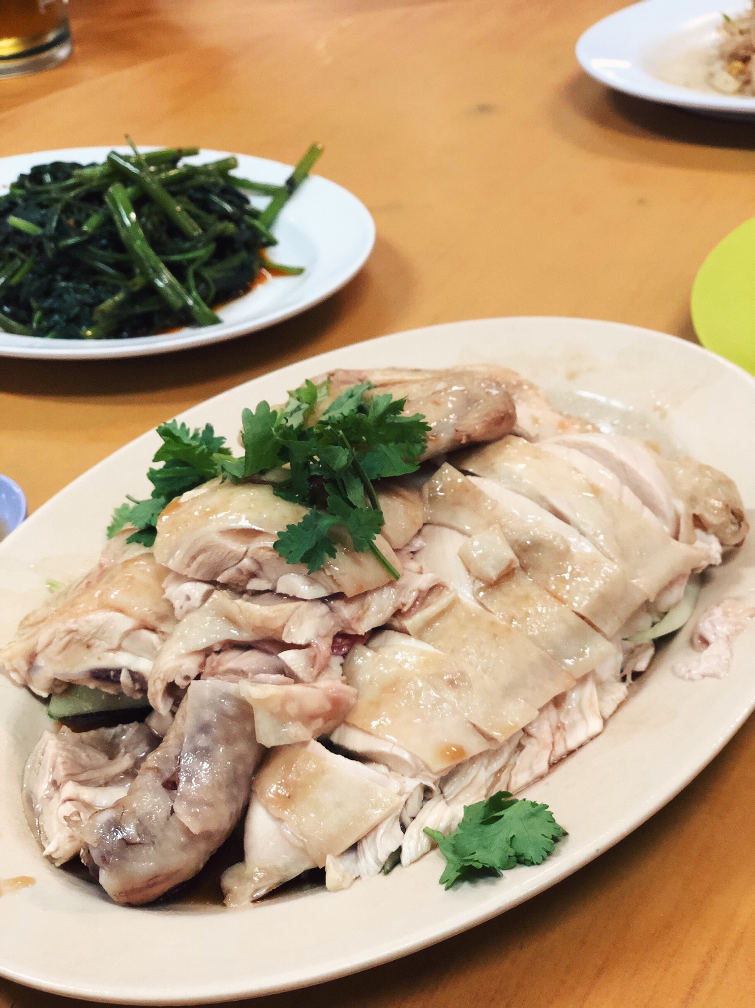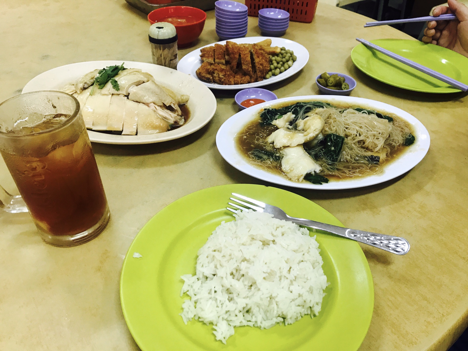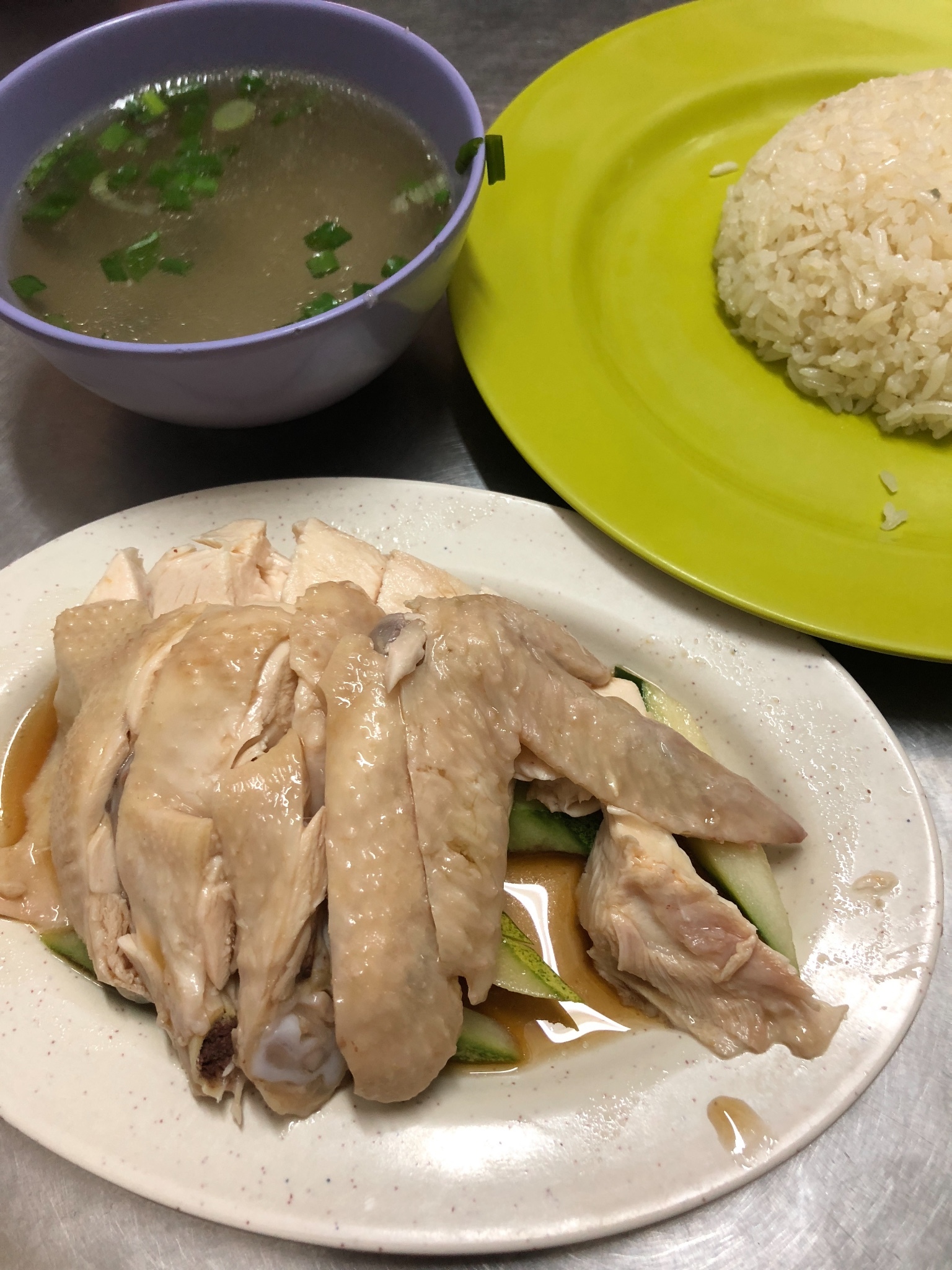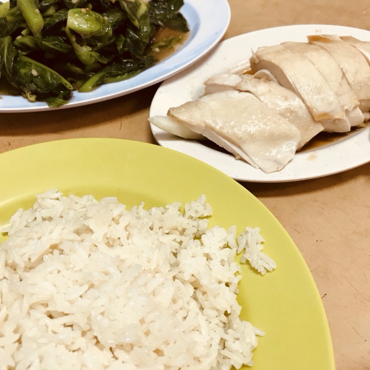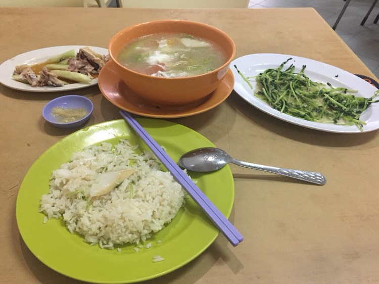 比较接地气,当地很多人都有去。点了一人份海南鸡饭,一份炒青菜,一份苦瓜汤,17新币。鸡肉嫩滑,青菜超级好吃,我一个不喜欢吃青菜的人吃了一整盘,汤也很有料,值得一去。