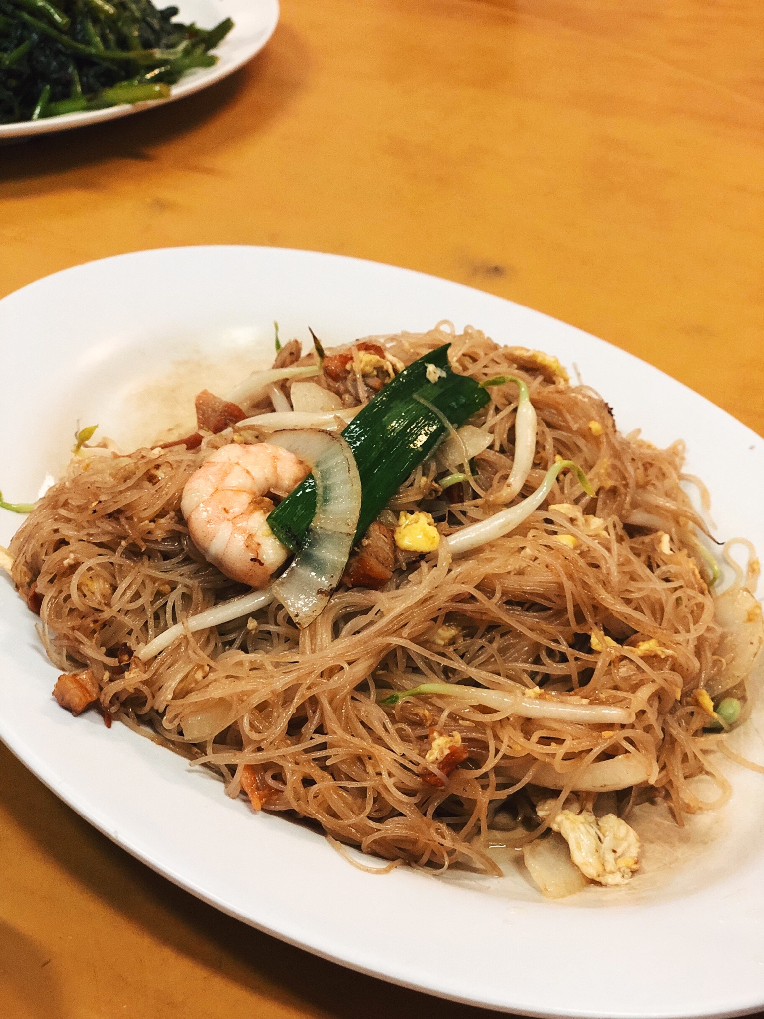 里面的位置坐满了,坐在门口,大排档的感觉,点了海南鸡、炸猪排、海南什菜、马来炒粉、罗汉果茶。海南鸡比不上天天海南鸡饭,海南什菜和马来炒粉都很不错,特别是马来炒粉,调味非常对我胃口。本来还想点咖喱鱼头的,服务员阿姨好心提醒是大份的,说喜欢的话可以明天再来吃。