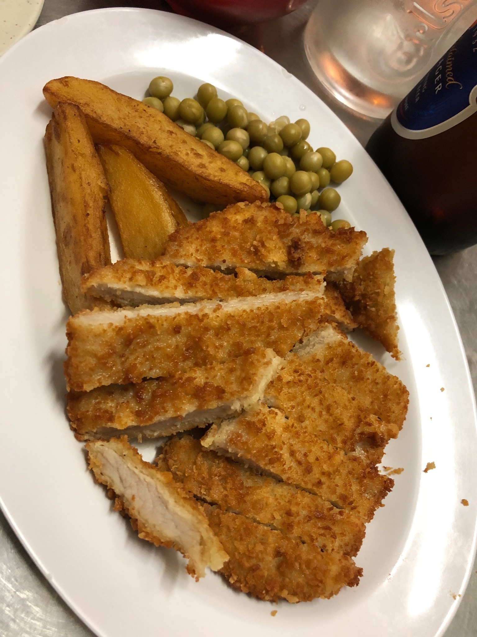 吃饭点钟店里都是人,一位难求。点了他家的炸猪扒饭和芦荟水。炸猪扒做的太老太干了,番茄汤汁还可以。很让人失望,不过服务员态度很好。