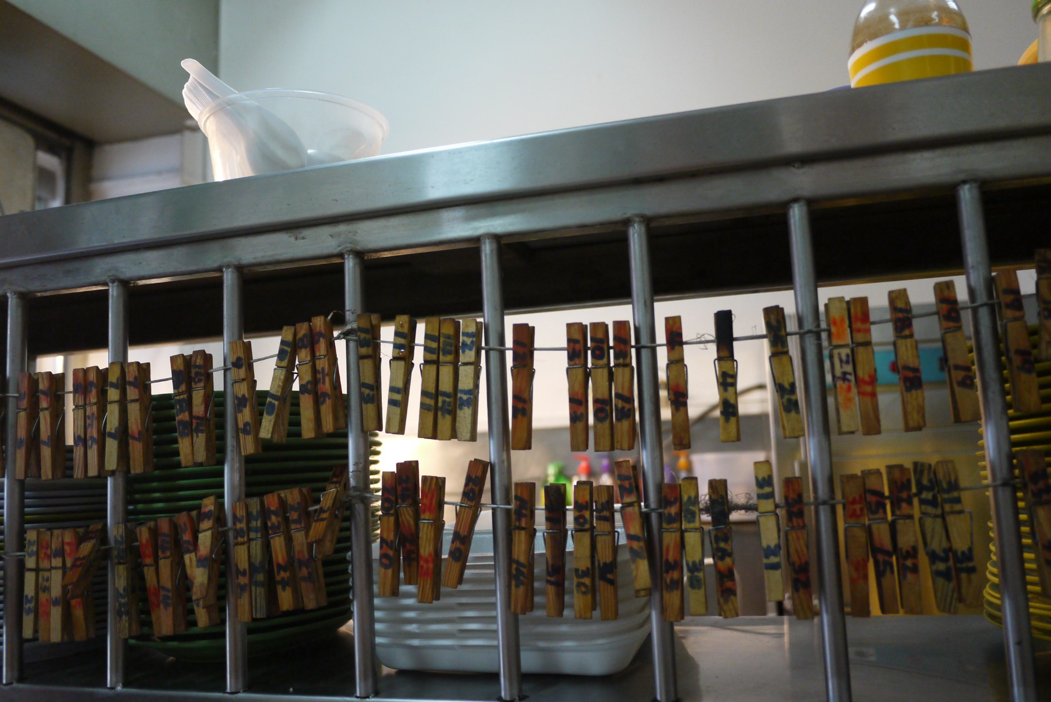 一到店门口就看见一只只油光光的鸡挂在透明的橱窗里,一排金黄色的烧鸡,一排淡黄色的白斩鸡,还有老式的木头小夹子,这样的场景恍若一时间到了香港一样。
