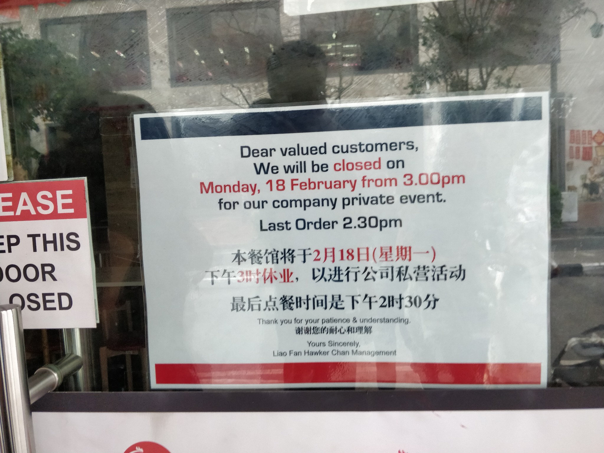 下午地铁到牛车水大厦,年味十足,计划打卡网红了凡香港油鸡饭,米其林一星的大排档,号称最便宜的米其林一星。刚好下午过元宵节活动,关门。