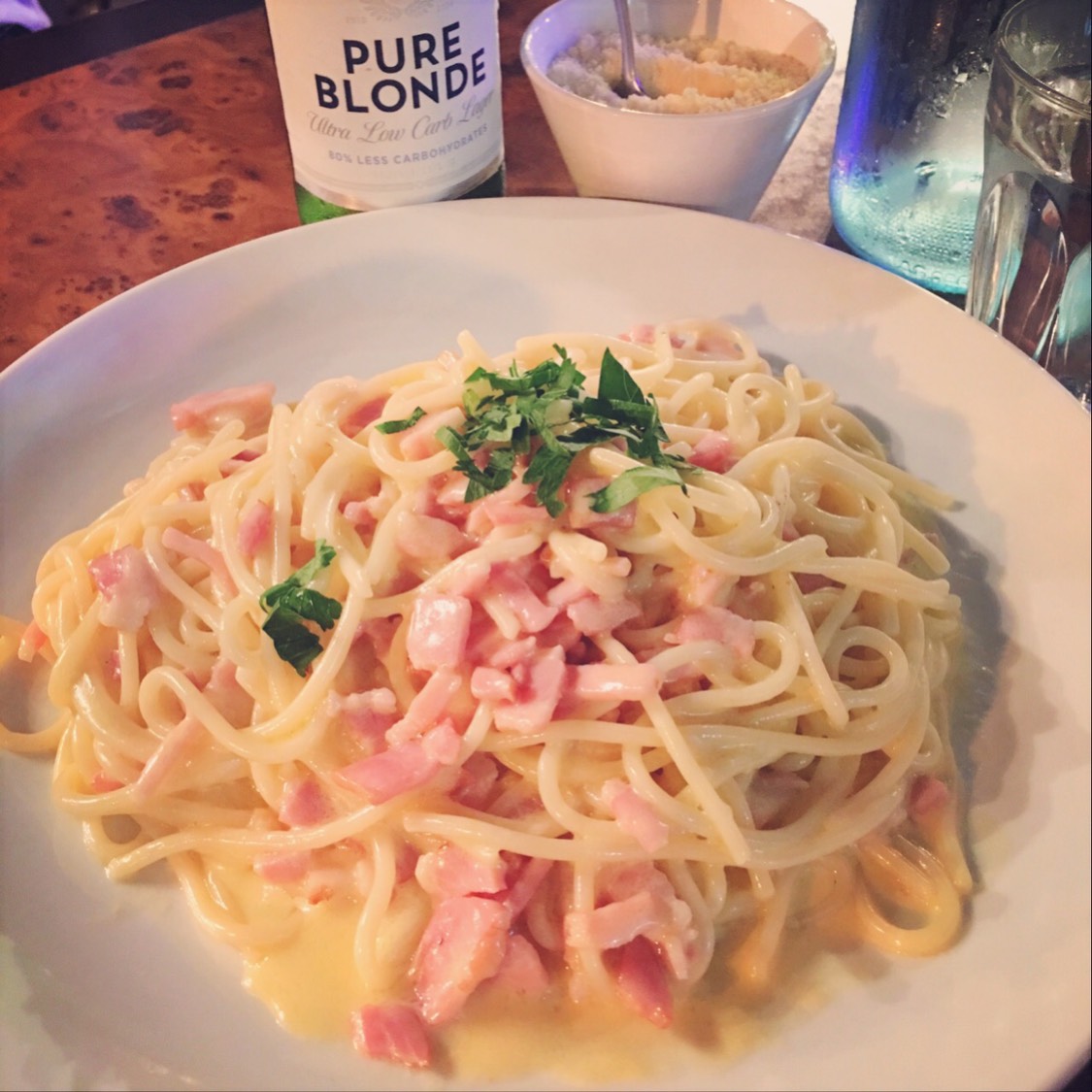 个人口味啊,奶油意面不要太好吃!都想把盘子舔了。。提拉米苏也非常好吃