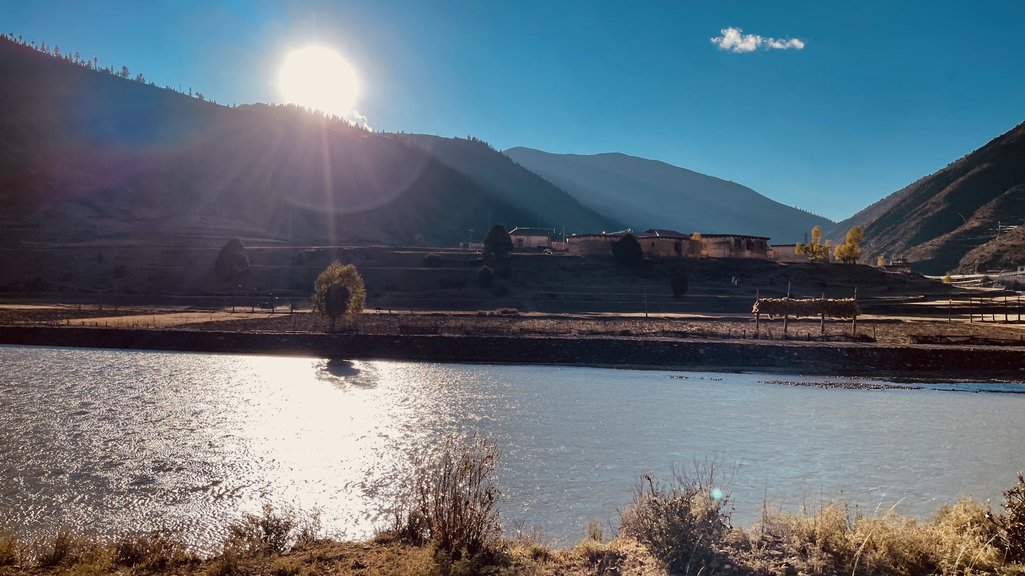 沿帕隆藏布江一路向西,离然乌湖十几千米处有一“瓦村”,村子房屋是典型的藏东南木屋风格,大量采用木材建造,连屋顶都是用木材铺就。清晨或黄昏时分,斜射的阳光弥散的光线下,村落里弥漫这浓郁的臧家韵味,炊烟袅袅,田野青稞,湖畔草甸,牛羊悠然,山影倒映,韵味万千,是怕舍得好地方。