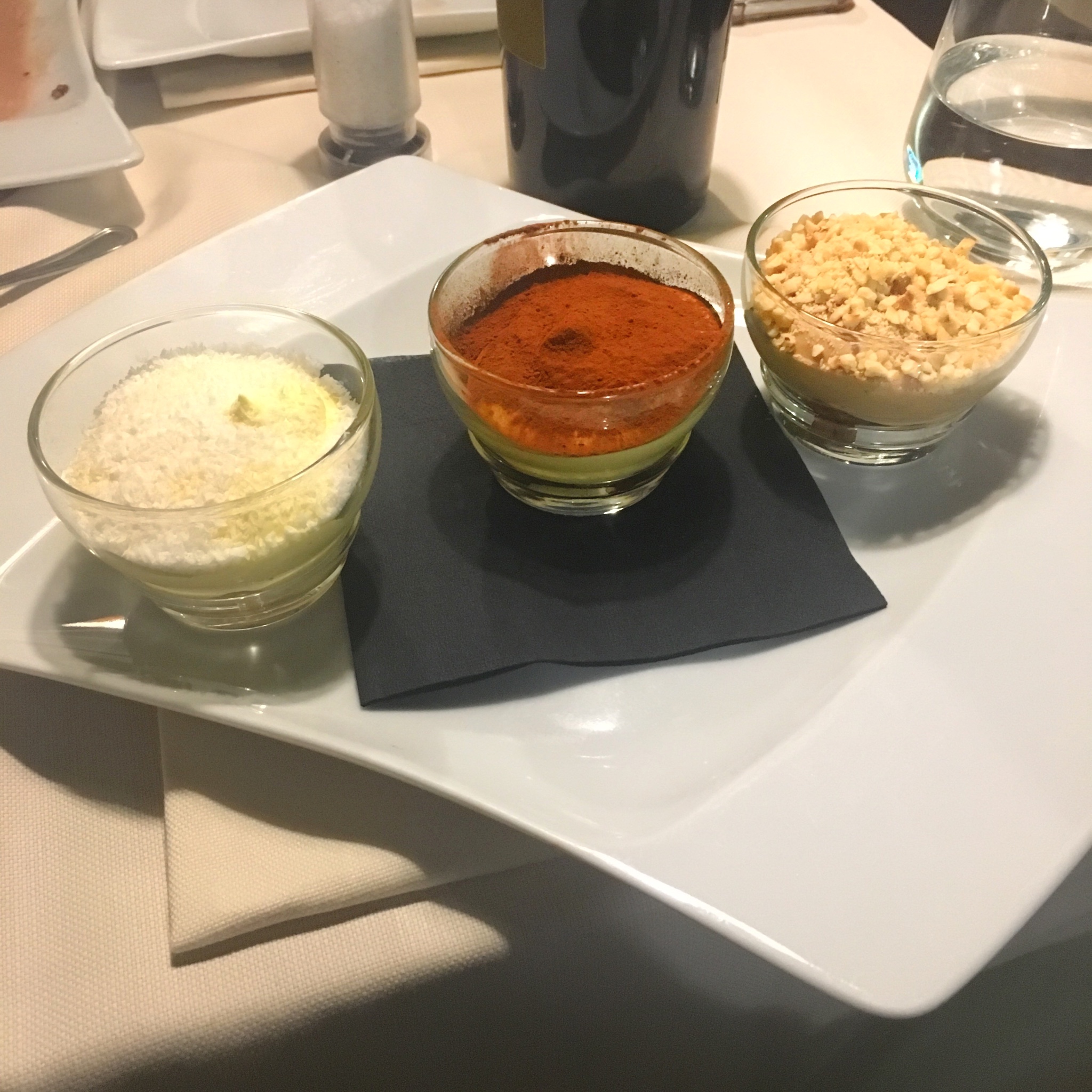 鲜虾意面超级美味,是我吃过把虾味做的最鲜的一家店。他们的提拉米苏是三个口味的。巧克力味和coco口味很别致。如果条件允许,一定要先预约,不然就赶在餐厅开门前排队。