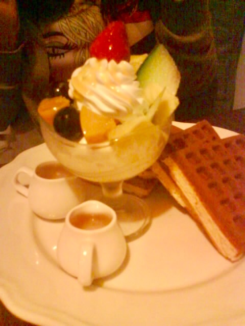 水果茶记得一定要点,是用柳橙、柠檬、苹果调制而成,芳香四溢,配松饼是最好不过了。