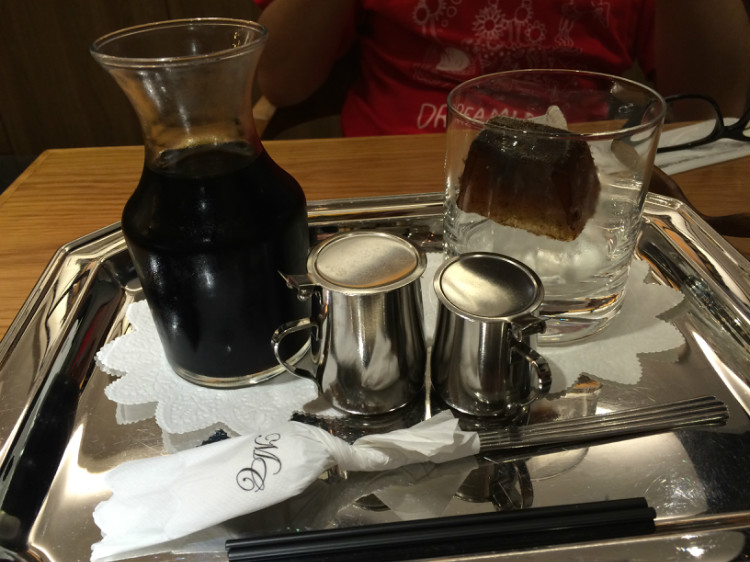 冰滴咖啡建议最后来一杯,是店里面特制咖啡机慢慢滴流到杯里面,滑顺芳香,冰块都是咖啡制成的,为的应该就是不减风味,另外送上牛奶、蜂蜜,每一口都有独特风味。