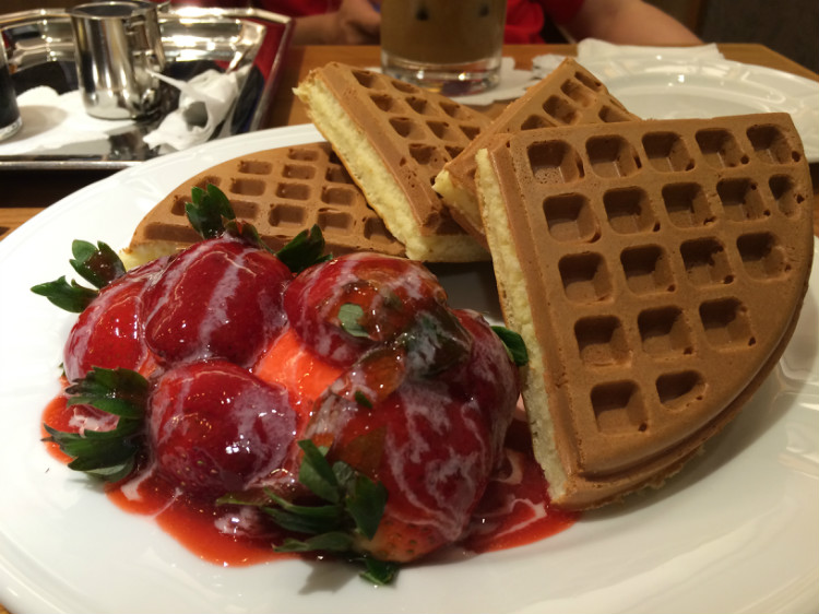 这家招牌草莓松饼超级赞,松饼很大块很丰厚,浓浓奶香,大颗草莓分量很足,鲜红酸甜,光看已经是视觉享受了,别忘了可以把两球搭配的奶油免费换成冰淇淋,享受多重幸福滋味。