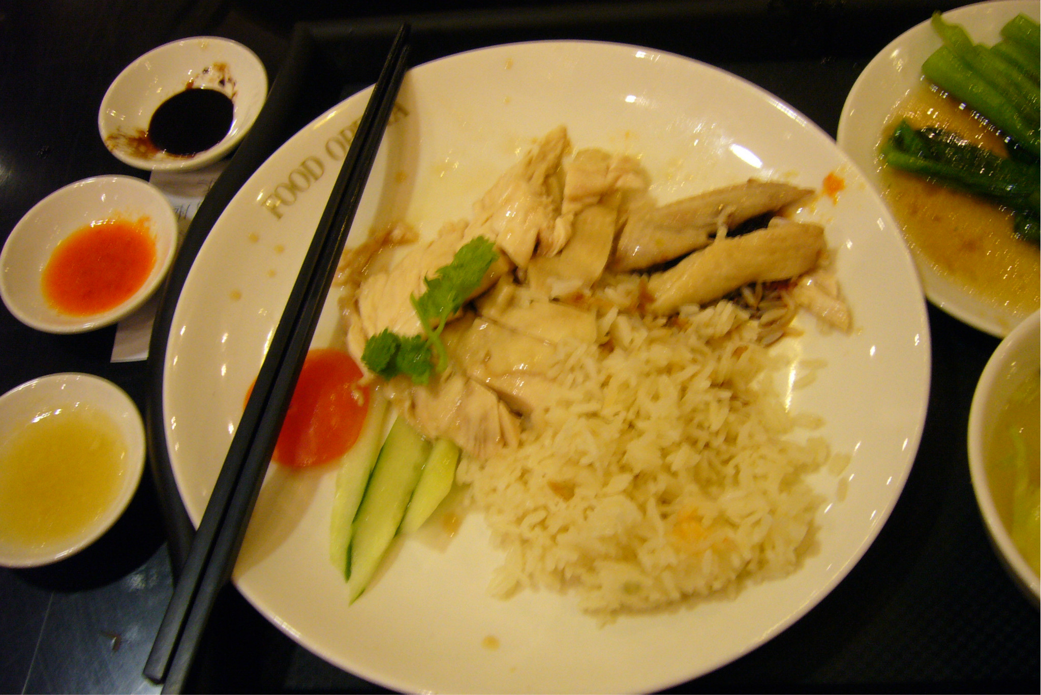新加坡的大食代,干净整洁,海南鸡饭、肉骨茶、沙嗲等等全都有。首先尝了尝海南鸡饭,加上汤和配菜,8新币左右。内容简单,但是味道还不错。汤特别好喝,加了鲜嫩小葱,清香爽口,绝不是水加味精,大家喝完了还想要。能免费加汤么?看我端着两个空碗,卖饭的小哥笑了,很大方给了我一个大碗汤,够3人喝了,真是给力。
