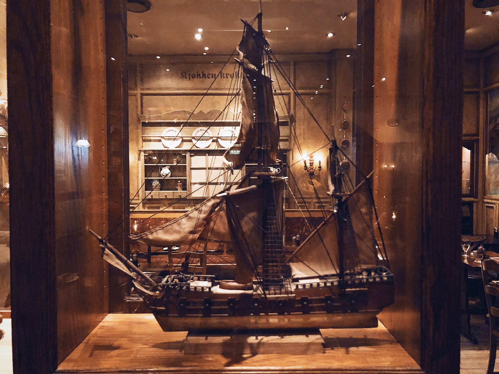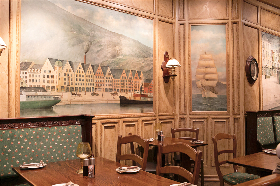 餐厅人气颇高,装饰很有特色,里面摆设各种古董、汉萨同盟时期风格物件,古朴典雅。这些食物都是新鲜的、精心准备的。特别是烤驯鹿,鹿肉像非常柔软的肉排,味道也鲜美。价格比冰岛贵一点,但是这家店食物算是正宗的。