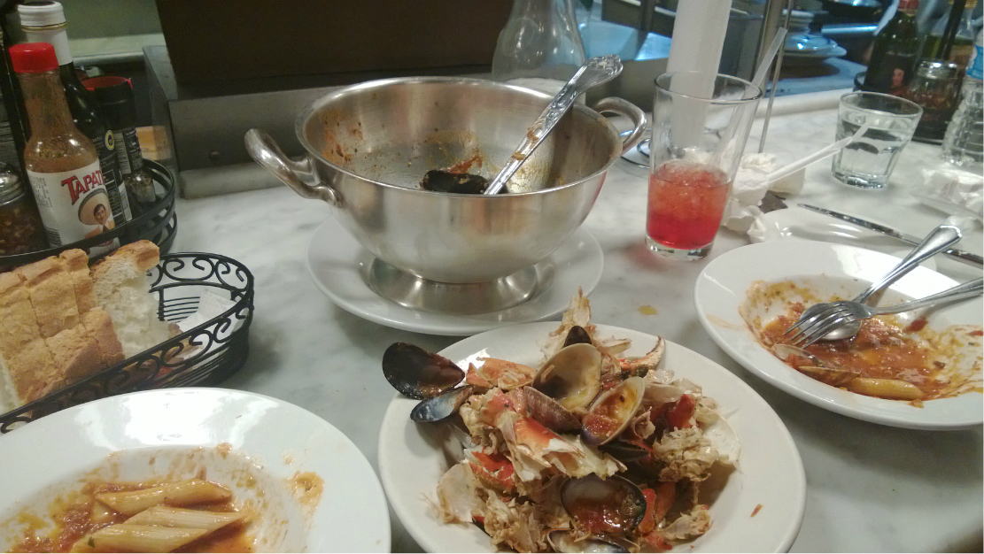 这家是意大利风味餐厅,所在区域也是意大利街区。虽然不是美式风味,但真的很好吃!在这里也是小有名气,在Yelp评分很高。个人觉得性价比比Crab House要高一些~餐厅也是很有年头了,装潢我很喜欢。一家主打海鲜美食的意大利小餐馆,别有风情!来这里不吃海鲜就白来啦~食材都很赞,推荐海鲜饭,真的超级好吃,不会觉得腻。必点的海鲜大杂烩,量足味道鲜。也是旧金山的名菜,来旧金山必吃。里面有螃蟹、虾、牡蛎等等各种海鲜,还有意大利空心粉,然后用西红柿芝士调的酱汁~美味!