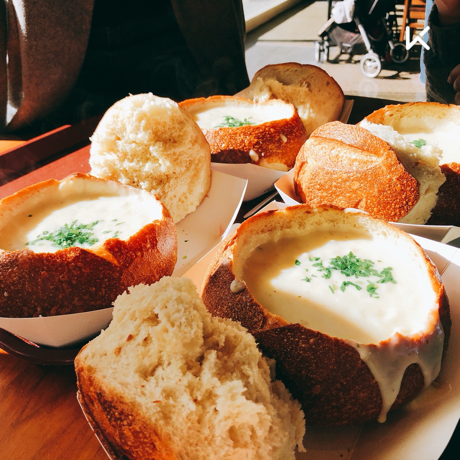 早餐去了渔人码头最有名的面包店Bistro Boudin Bakery,不免俗的吃了酸面包汤,这个真是比我想象中好吃100倍,浓郁的海鲜汤配着硬硬的面包,美美的吃了一顿,精神充沛的开始了我们1号公路之行。