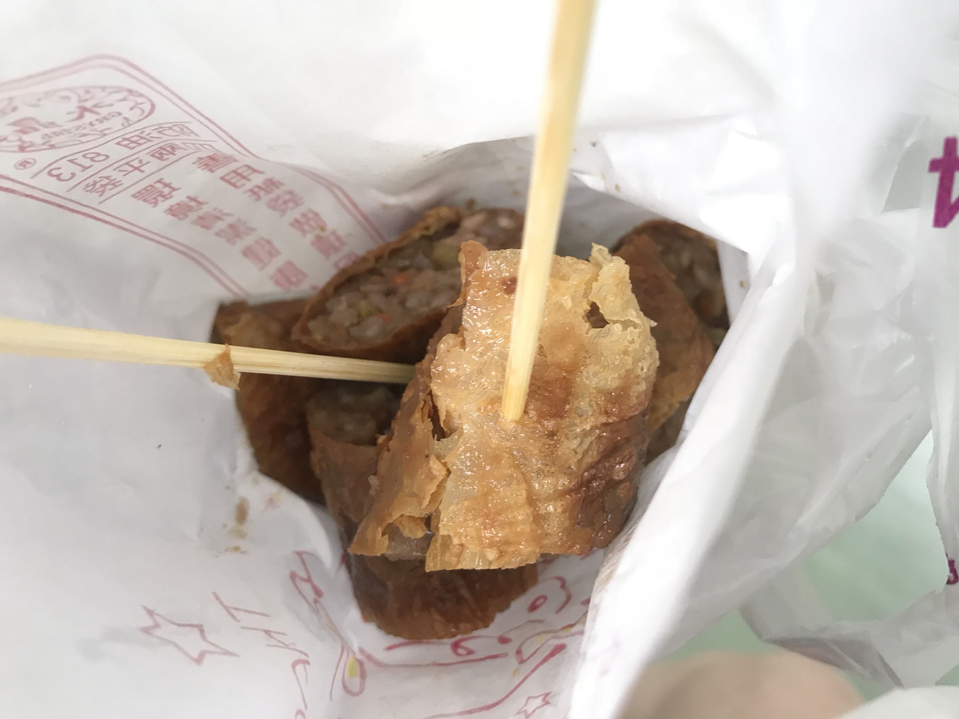 先来到了菁桐,下了小火车就可以看到杨家鸡卷!!!我们去的时候是下午,只剩下最后的这几个了!果断买入~贴心老板,还给我们再加工了一下下!炸的正好,外酥里嫩,还不油腻~