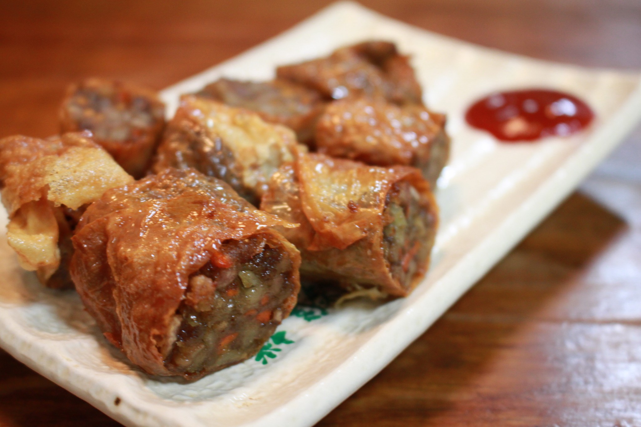 一早来到菁桐,好饿,所以去吃了杨家鸡卷。这家店很有意思,鸡卷没有鸡,肉羹不勾芡。点了鸡卷,50台币一份。老伯伯做好之后,给我们端上来的。份量中等,外面炸的酥脆,里面是素菜,蘸着番茄酱吃。总体很新奇,听说是曾经这边家境不殷实的人吃的,缅怀过去的古早味。