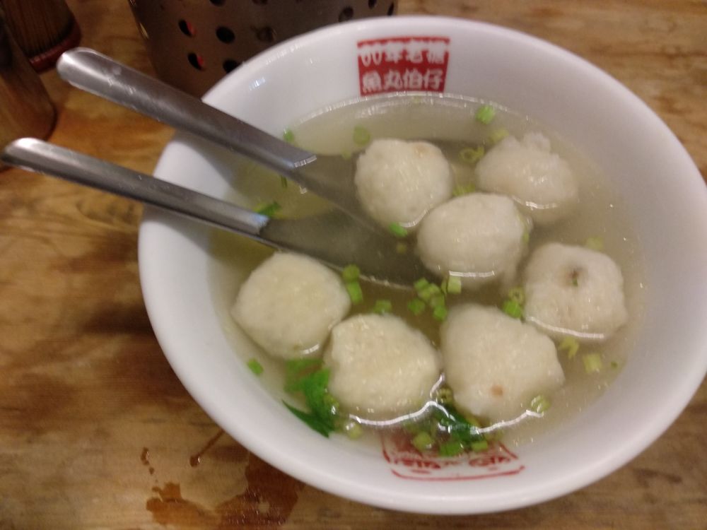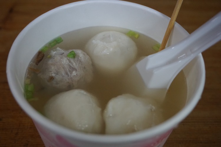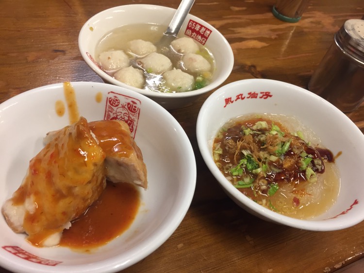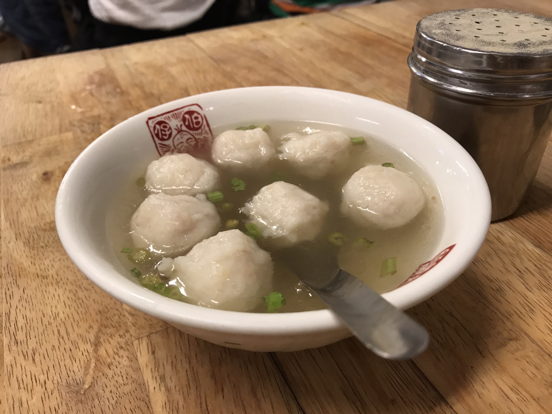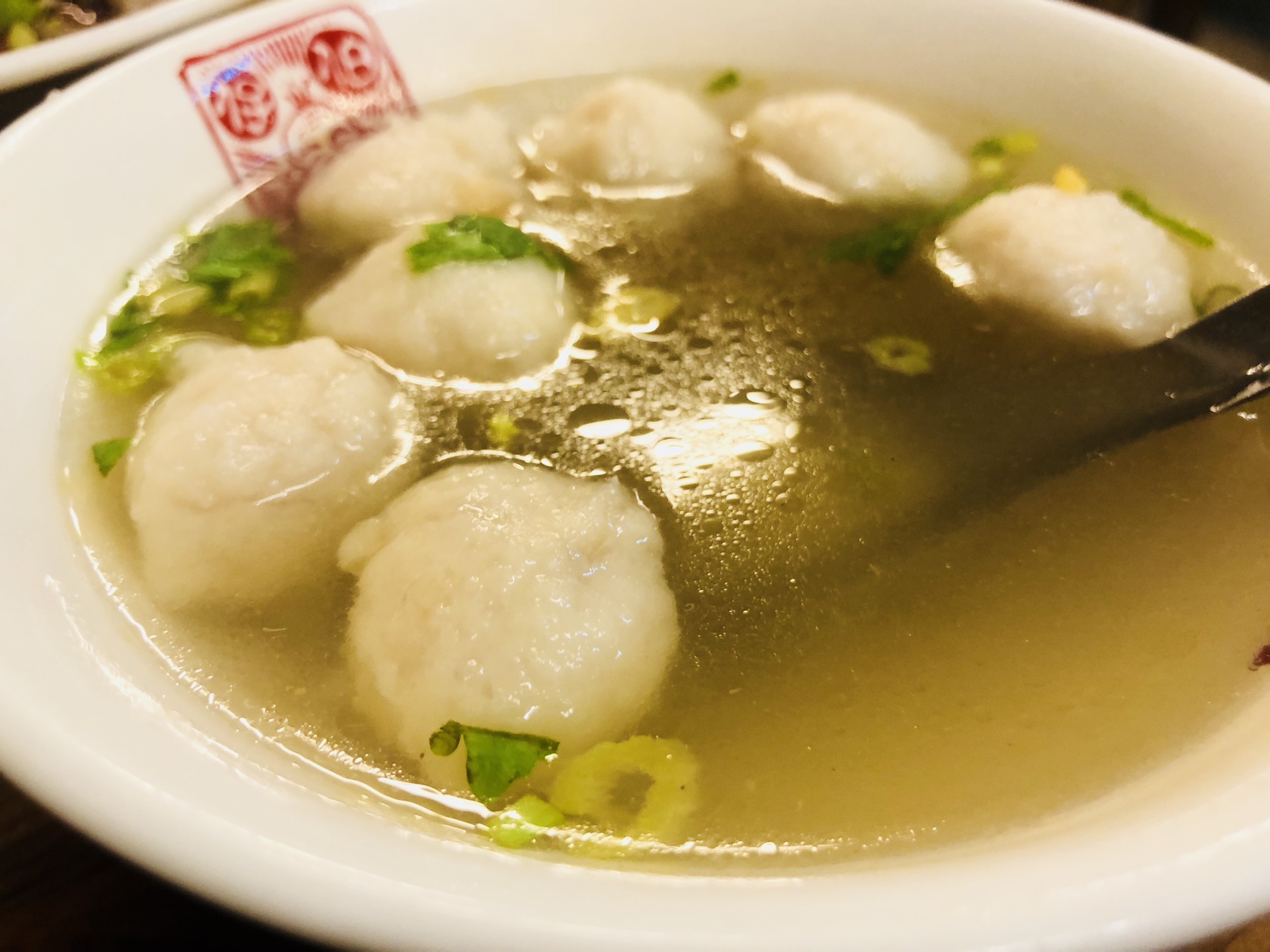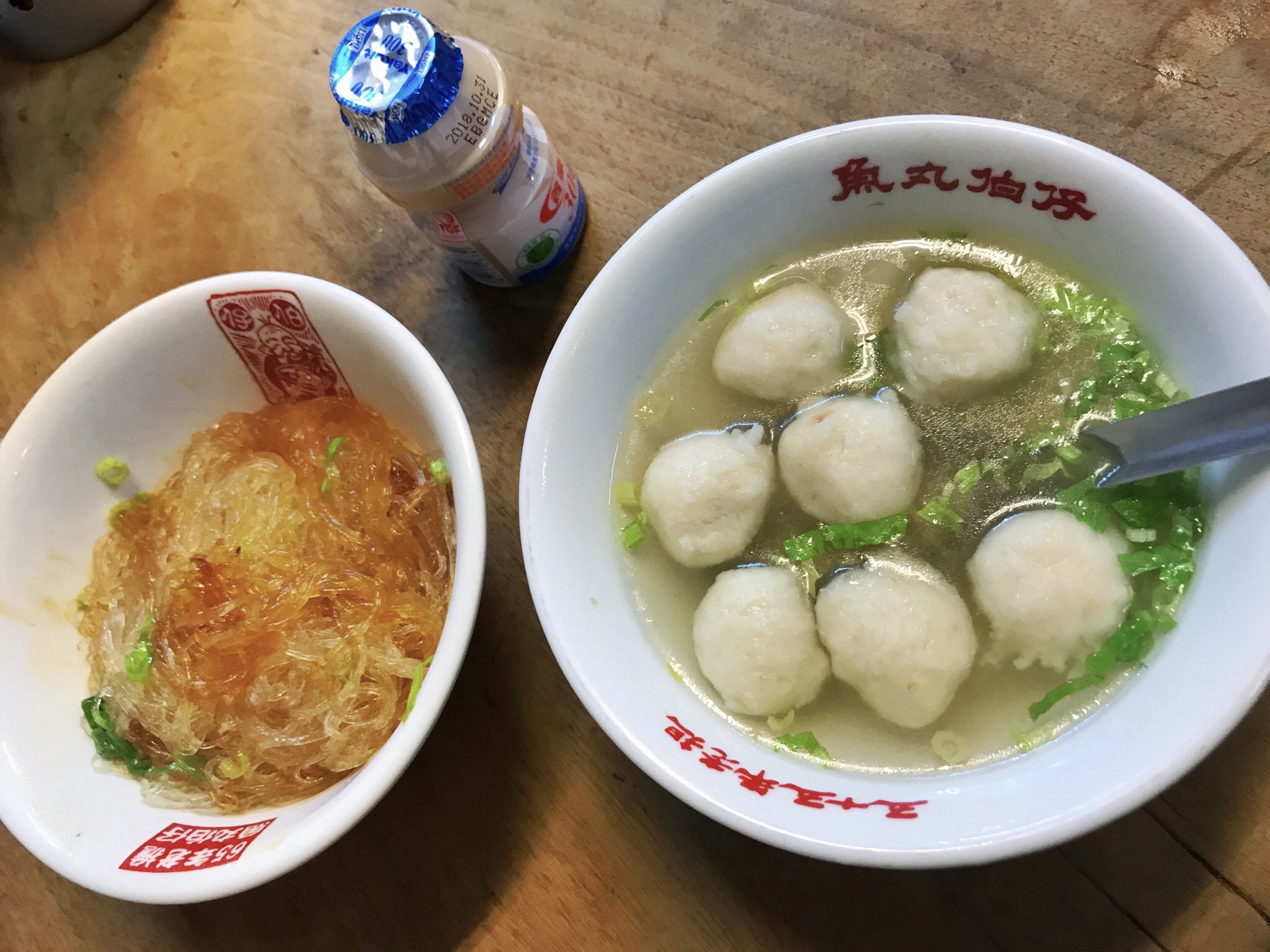 要吃最古早味的魚丸就要到創立於民國35年的魚丸伯仔,臺灣的魚丸一直對我衝擊很大,和我認知的「魚蛋」是兩回事,並不彈牙爽口,能吃到少許魚腥味還有被打碎了的魚刺,配上加有芹菜、胡椒的清湯有一種溫暖實在的感覺。