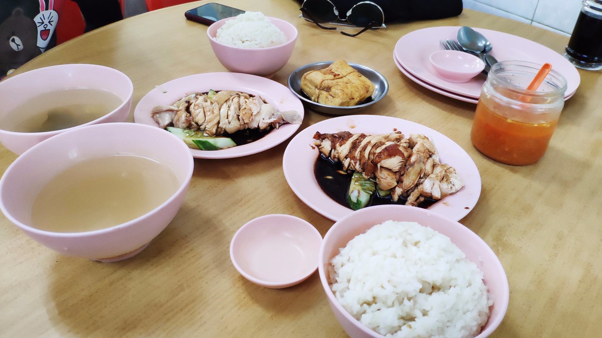 槟城唯一正宗传统海南鸡饭,经常登上报纸的鸡饭,营业时间为上午10时30分至晚上7时30分。这里中午的时候是会满座的,如果是多人来的话最好早些到,别碰到上班族的午餐时间。这里的鸡饭上桌时与一般的鸡饭有些不一样,会端来装油饭的碗和空碟,把饭倒在碟子上再吃吧,鸡肉有烧鸡和白斩鸡,肉很香滑,但个人比较喜欢白斩鸡,感觉口感比较好。