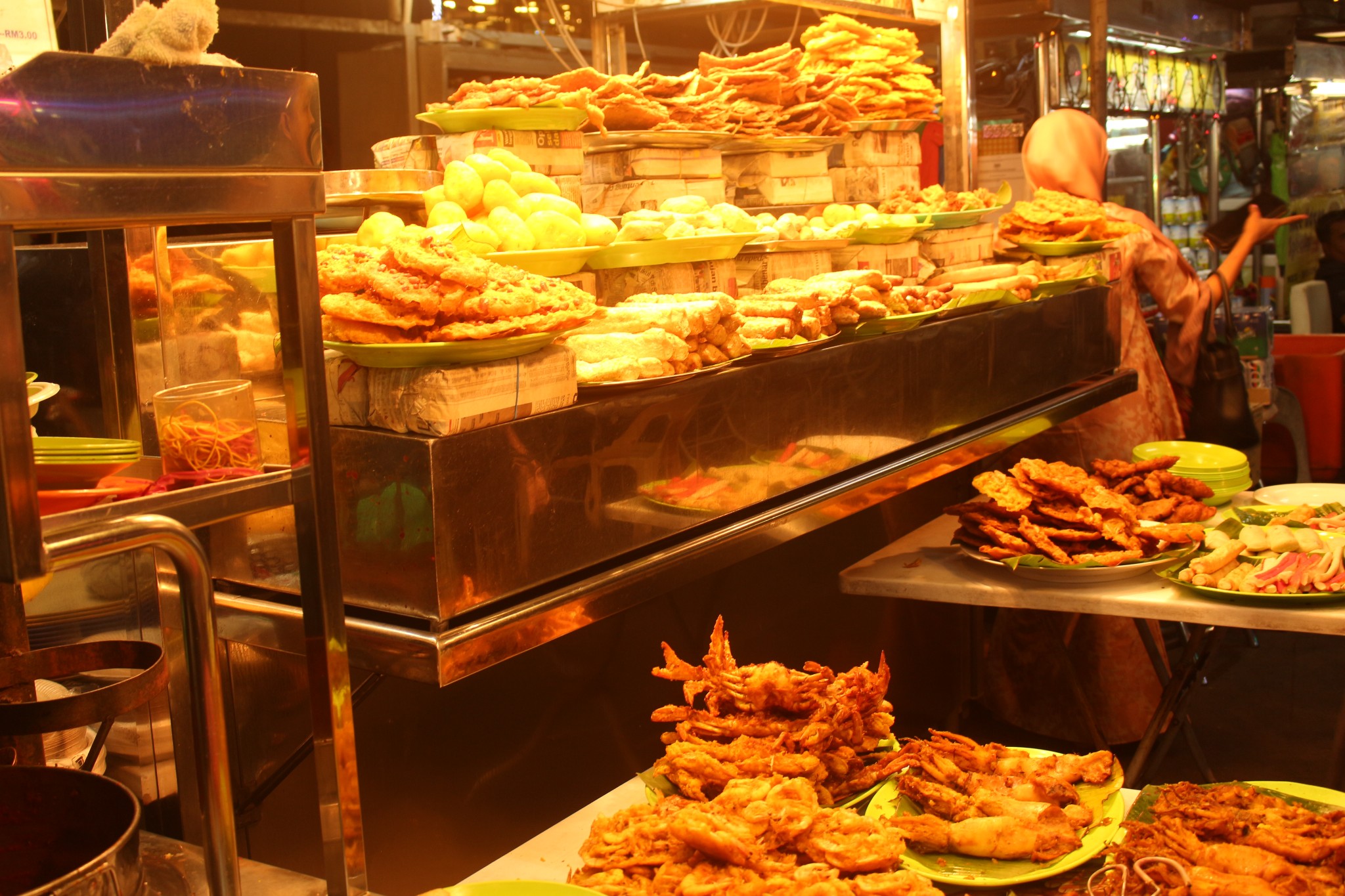 这里是槟城最负盛名的夜市,夜市位于槟城的临海,听说是晚上6点才开始营业,过百个摊档,各类马来西亚小吃都可以在这吃到。热闹的夜市吸引了来自世界各地的游客前来大快朵颐。还没走进新关仔角,就已经闻到各种食物的香味,令人垂涎三尺。炒粿条、嚤嚤喳喳、亚参叻沙、福建虾面、烤串、炸鸡、鱿鱼、甜品等,几乎槟城的美食都可以在这里品尝到。整个夜市吃的非常多,建议可以先整体逛一遍后再选择最想吃的那家。这里很出名的莫过于,71号炒粿条,远远已经能看到排起了长龙,而且每个人几乎都是3、4盒的打包,下单后马上现炒。里面虾仁很新鲜,粿条味道也很不错~墙裂推荐烤鱿鱼!除了基本的几款槟城美食,我们还挑战了印度菜式~ 夜市的中间位置有几家卖印度的小吃店特别显眼,按奈不住好奇的心决定试试。 店里卖的都是炸物,肉卷、蟹柳、丸子、海鲜都是经过油炸的,一盘盘摆放出来任挑。挑好之后直接给老板算价格,他们还会给淋上很多甜甜的酱,味道尚可接受,但吃多会觉得腻,是个蛮特别的食物吧~当然还有不可错过的烤肉串!配上沙爹酱+甜中带辣的花生酱汁,再加上黄瓜、洋葱一起食用,绝对是一流的味道啊~~~