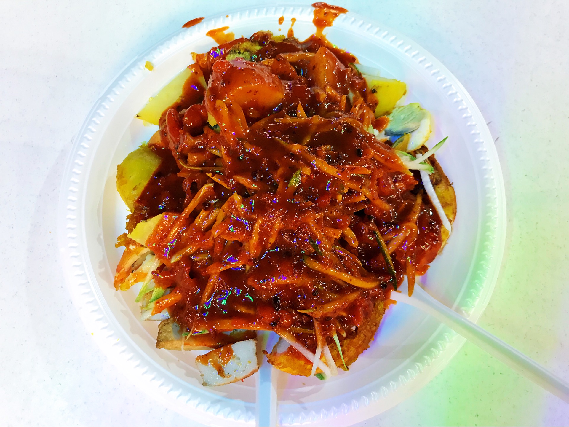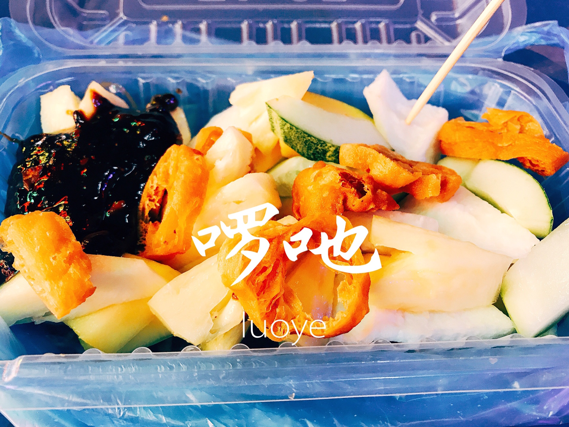 新关仔角夜市不小,我去的时候大概9点半,人很多,一个一个小的摊位自己挑选。挑选了跟之前不重样的吃的,包括蚵仔煎,Rojak和煎蕊。马来人三三两两的一起吃饭,都会点一份Rojak,然后再配面食或者是炒饭之类的。Rojak我点了一份,也让老板给我介绍了下,Rojak是马来语的“杂烩”,里面可以挑选很多东西,土豆,鱼糕,鱿鱼,虾,蟹,鱼丸,肉丸,卤蛋等很多,配上清爽的黄瓜丝和甜辣酱,夜市点的这3样也都很好吃。
