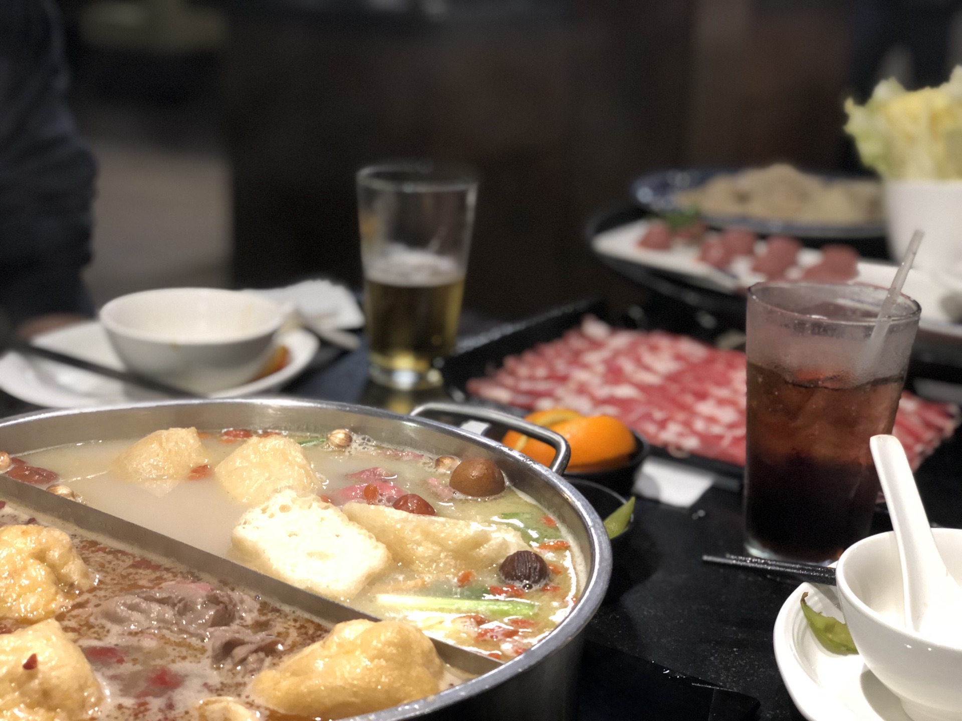 这边的小肥羊锅底实在是太清淡了,辣锅跟个清汤锅一样,所有的豆制品都带着一股奇怪的酸味,不过牛肉羊肉真好吃呀!
