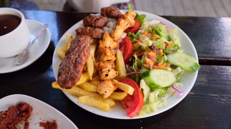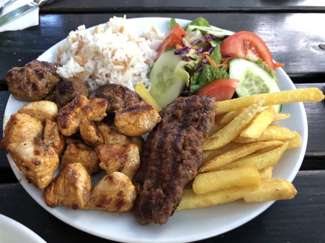 在塞尔丘克的一家土耳其烤肉店,老板人很亲切,菜品和大多数土耳其餐厅一样。