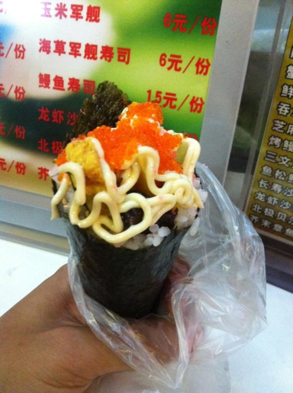 最爱的三文鱼手卷,可以拿着边走边吃,观音桥、三峡广场等都有,其他的也不错