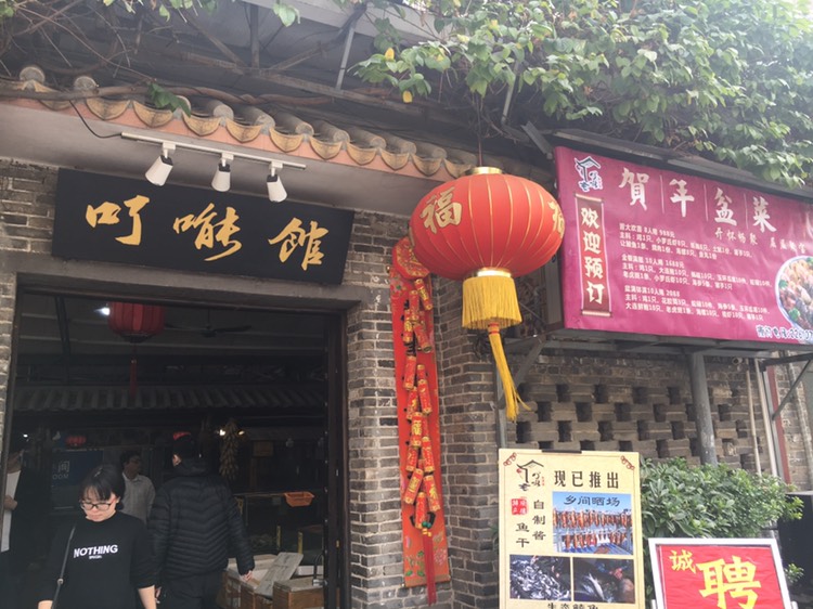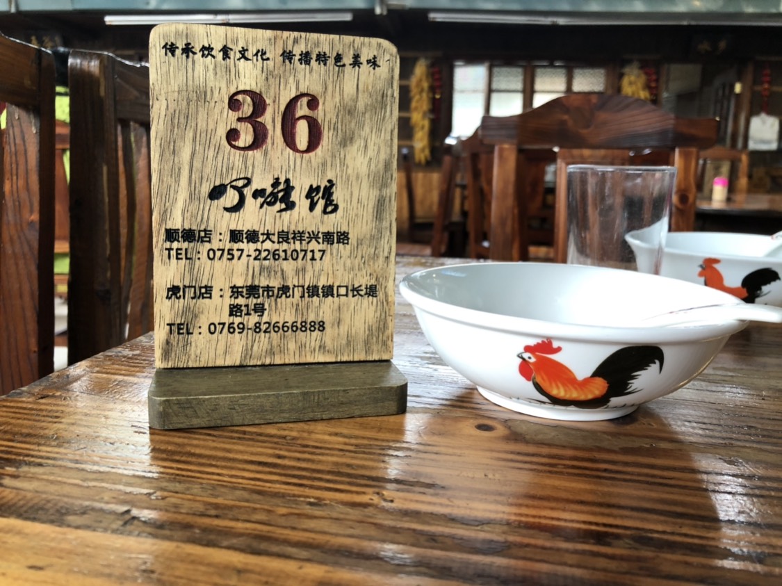 饭店似乎在一个像城中村的地方,门口是有停车处,也有人管理。为了后面还有余量继续吃别的,也怕用餐时段太挤要等位,我们到酒店安顿好就在17:00前赶到餐厅。餐厅已有客人,可员工们还在休息,管理停车的老伯告诉我们17点开始点菜。走进大堂即是点菜的地方,墙上满是菜品图片,地上是海鲜水产和菜蔬,旁边还有一堆老火靓汤。有网友说他家环境像大食堂,体验不佳,但对于我来说,虽没有想象中高大上,却也不赖。尤其是看到公鸡碗时,以为是来搞笑的,tvb道具吗?谁知后面吃过好多家餐厅都是这样的碗。粉葛鲮鱼汤,汤水鲜美,喝了一碗又一碗。了能馆汤好喝,菜好吃,分量足。然而论首推,当然非炸牛奶莫属。顺德餐厅里的炸牛奶之多,貌似家家都有,但不是皮厚就是奶香不足。几日下来,还是了能馆的最难以忘怀。外皮加上杏仁片,香脆还未结束,甜腻的奶香就蔓延开来,因为甜,所以会腻,但腻完这一口,会不由自主地再咬下一口。鹅略肥,略咸,四分之一只没吃完,还好当时点菜时听了点菜大姐一句劝。以自己的口感来说,烧鹅还是配冰花梅子酱好吃。煎焗竹生肠,中间塞了泡椒,口感特别,不腻,但就吃一口镬气,凉了就不好吃了。