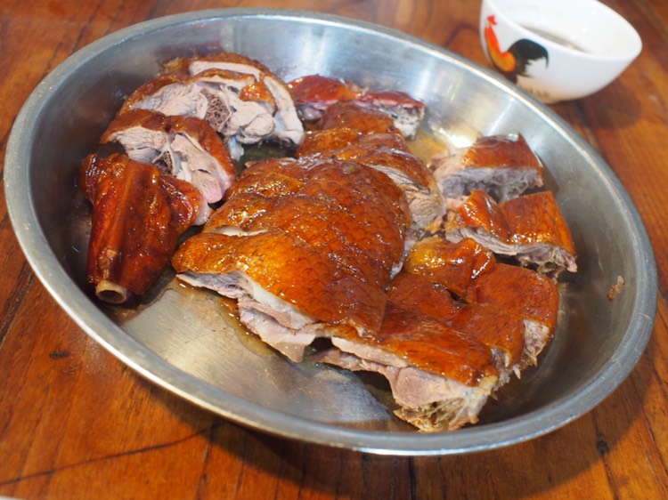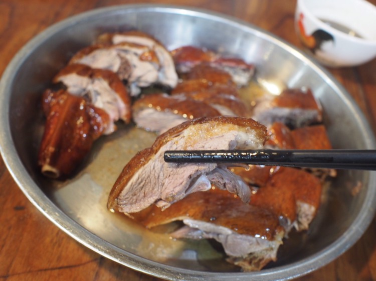 烧鹅肉挺厚的,皮也挺脆,就是有点老。