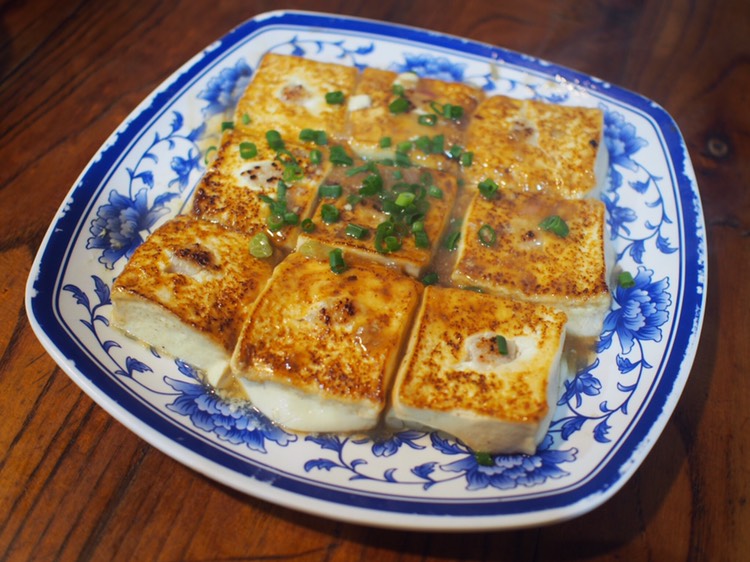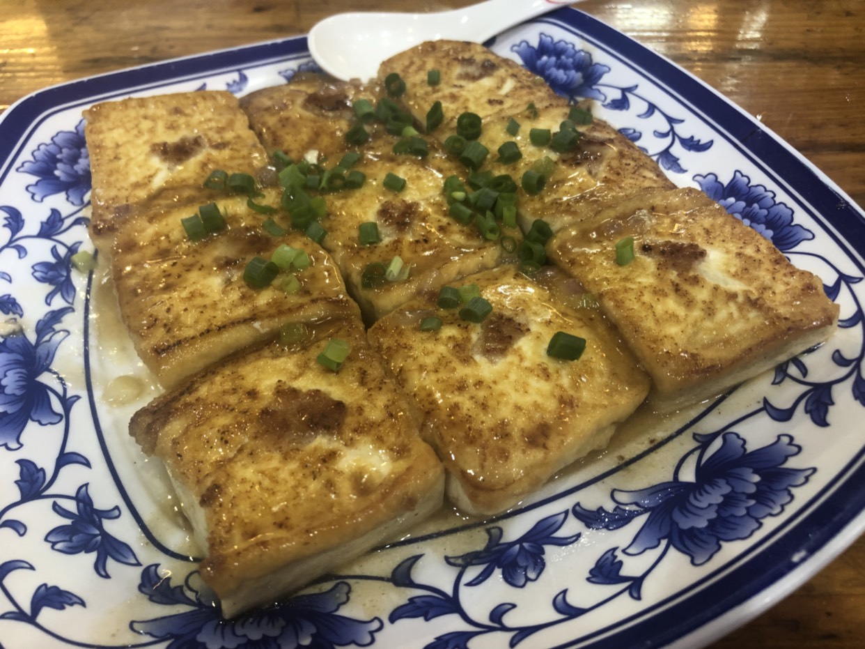 煎酿豆腐,煎得很香,豆腐很嫩。