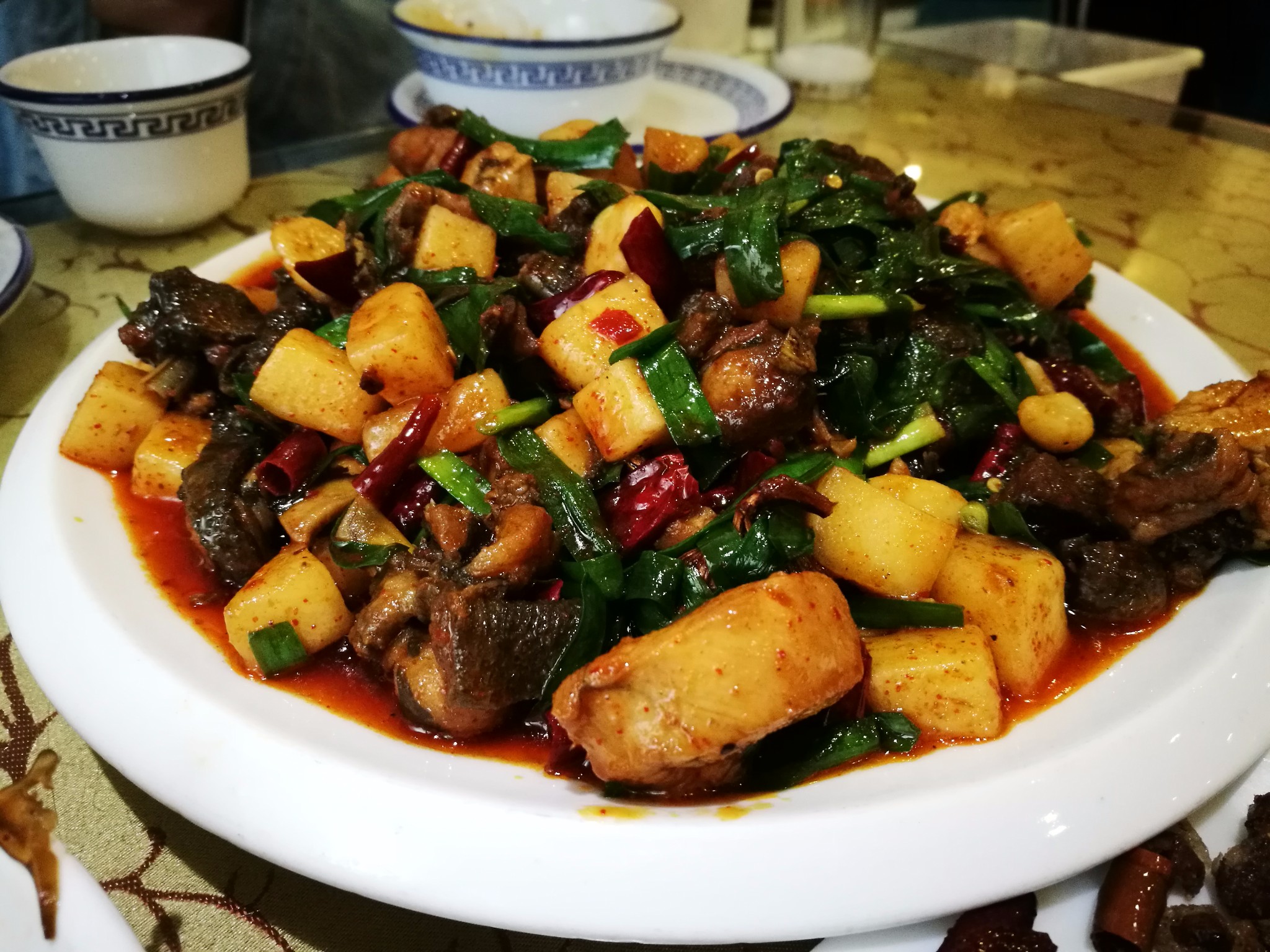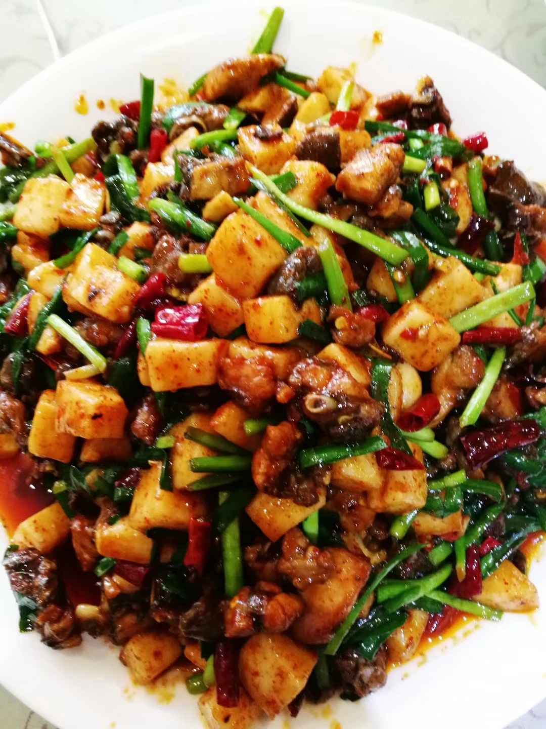 饵块鸡:用的是乌鸡,肉质比较紧实,有点像大盘鸡。