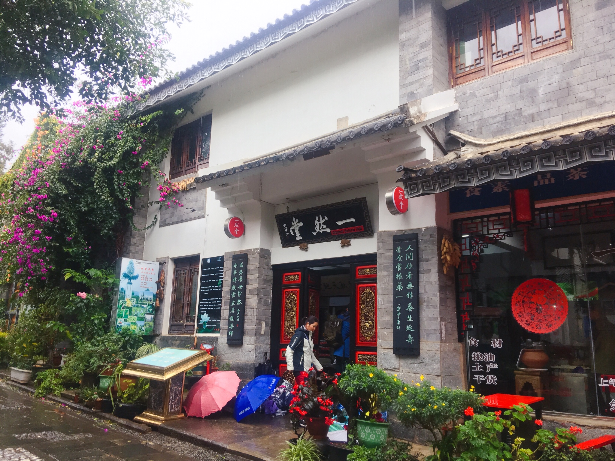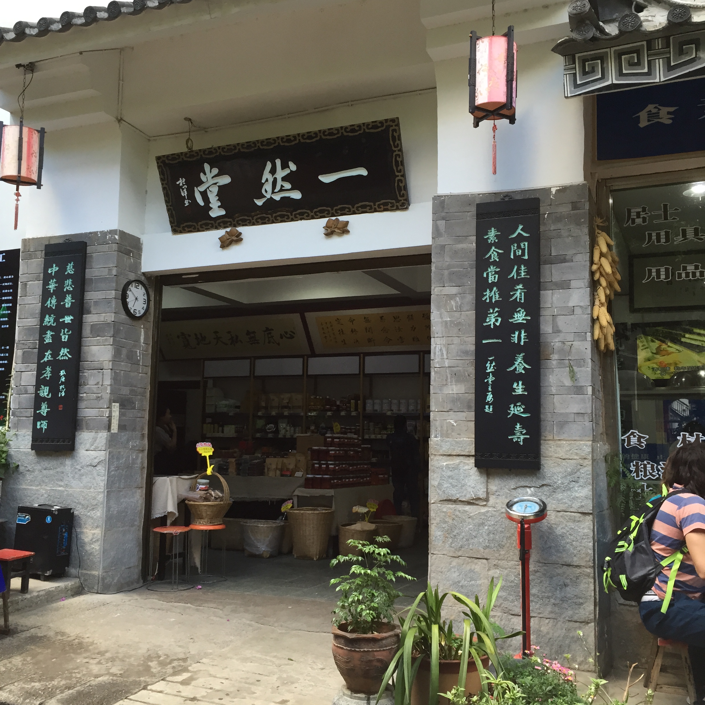 挺有意思的素食馆,在大理古城红龙井边上的古榕会馆的小巷子里,挺幽静的。我是晚上六点半左右去吃的晚饭。当时里面没多少客人。这家素食馆有露天座位和室内座位的,发现老外竟然也来这里吃饭诶。进去就有一个餐饮自助区,自己投钱到一个缸内。米饭自己打,也有粥,然后就是6-7个炒素菜,一个汤,还有几种腌制的酱菜。素斋味道还行,觉得芹菜和莴笋比较好吃,汤冷掉了。它家的规矩就是能吃多少吃多少,不得浪费。吃完自己把碗筷放指定地点。整个餐厅很清静的,真有种佛门吃饭的感觉。这边也有售卖特产的区域,每件东西上都贴了一个爱字的标贴。店内服务员叫客人为“师兄”,好有趣啊。去大理古城的话,可以去吃吃体验下。