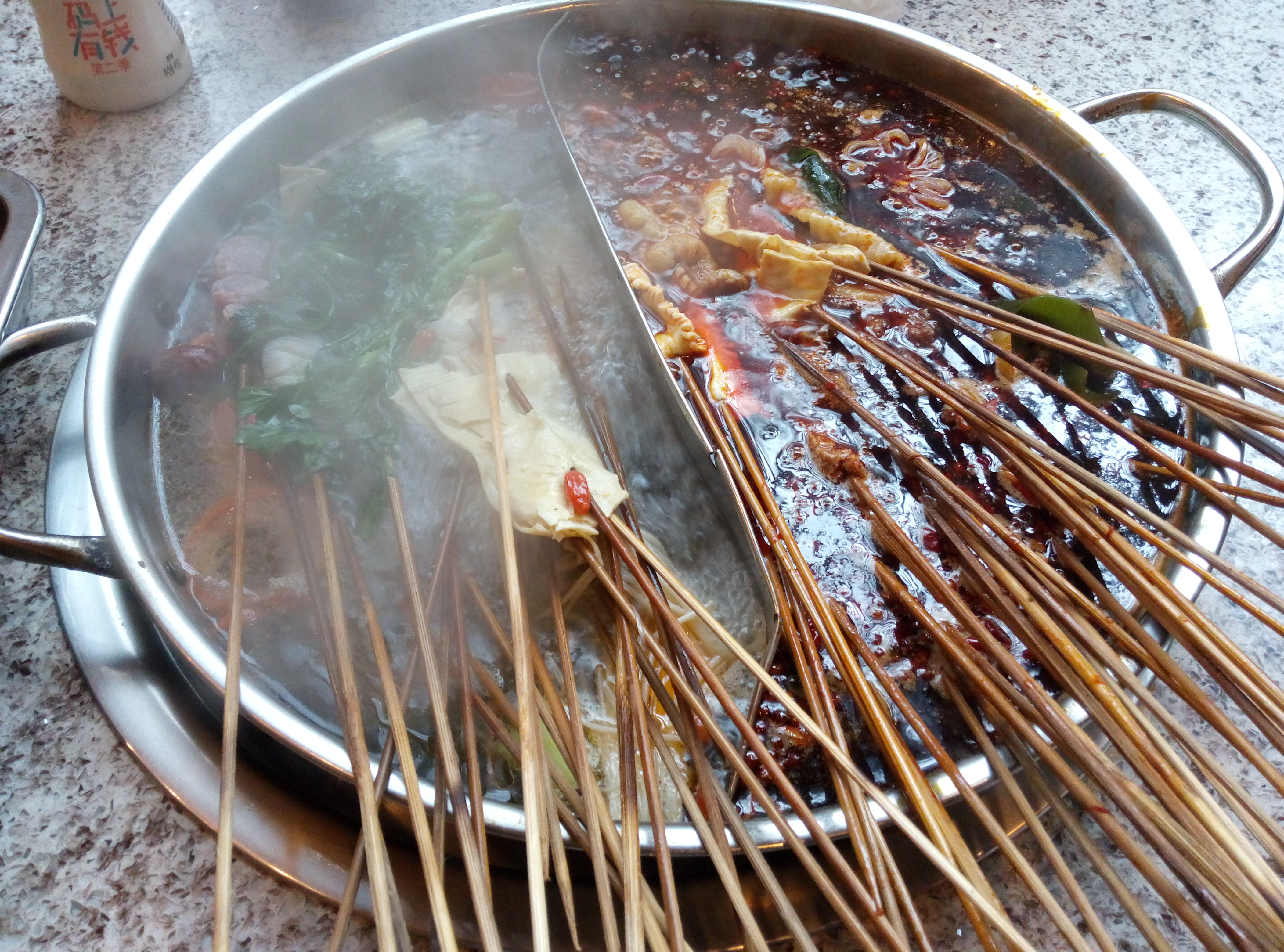 我一个人吃了104,后面一个妹子也是一个人,吃了110,所以绝对不是我吃的多,红油锅现在30一个,鸳鸯38,没吃过其他的,没得比较。吃过重庆那个李串串,觉得那个更好吃