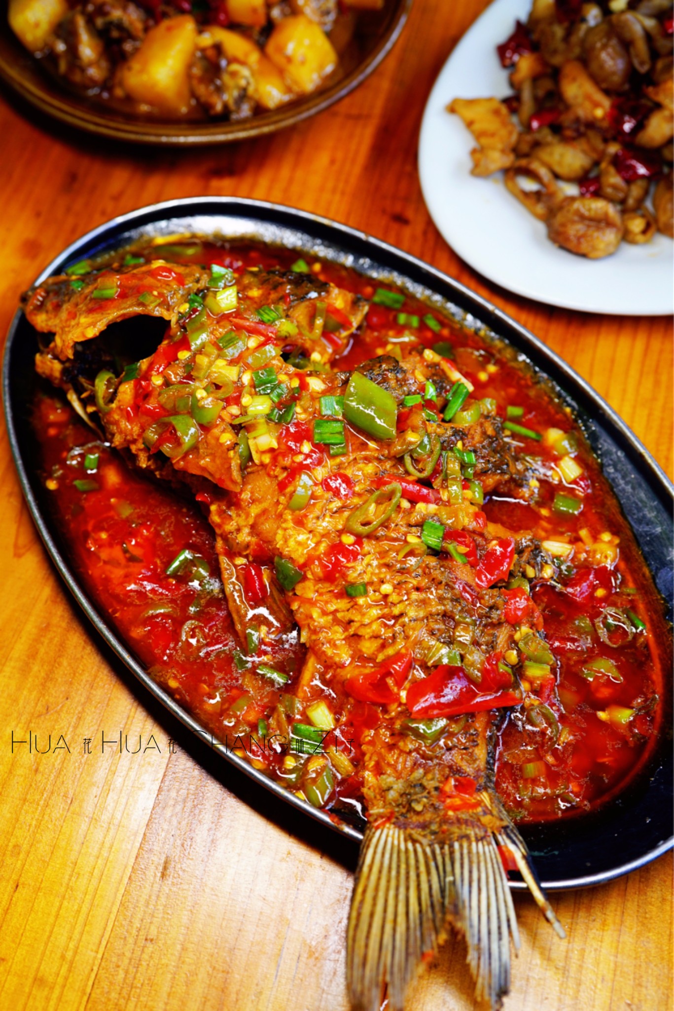 槽辣鱼,先炸好,再放实现腌好发酵的辣椒一起焖,喜欢吃辣的童鞋一定要点这个菜。