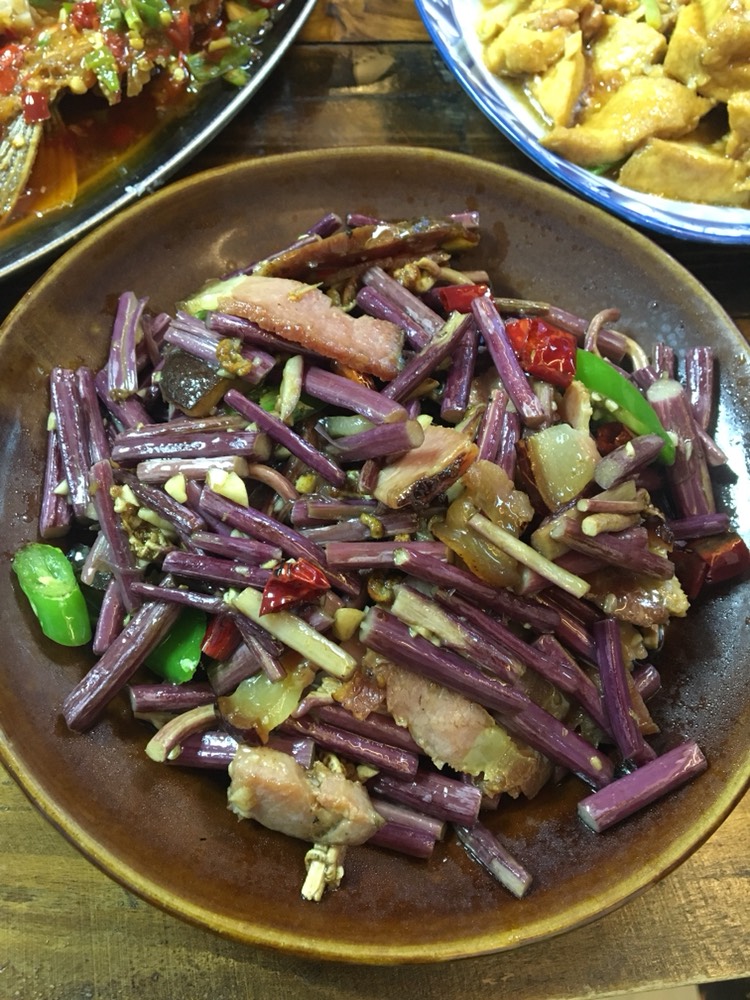 糟辣鱼,蕨菜炒腊肉,苗家豆腐……哈哈拔草,最爱蕨菜腊肉,