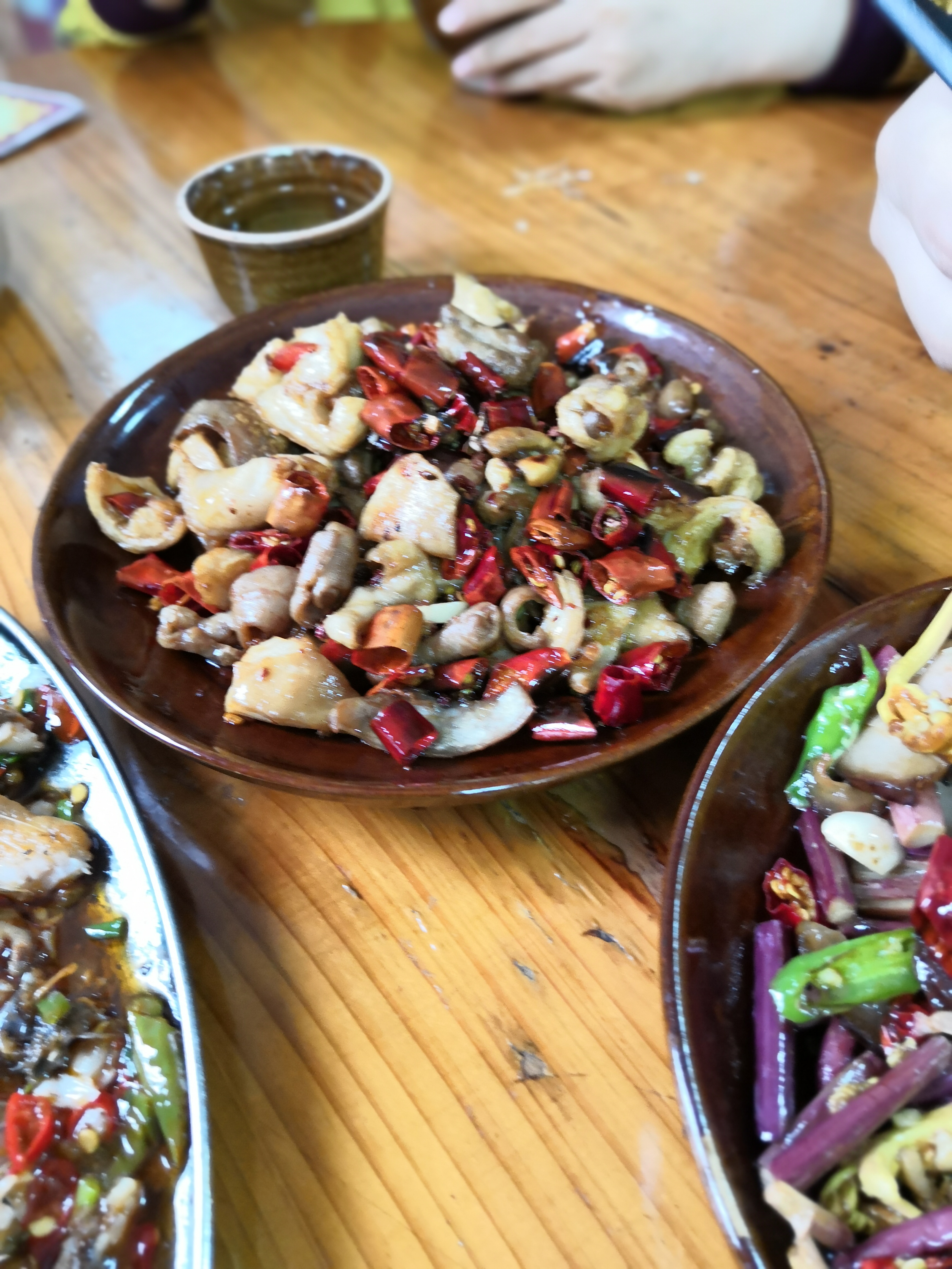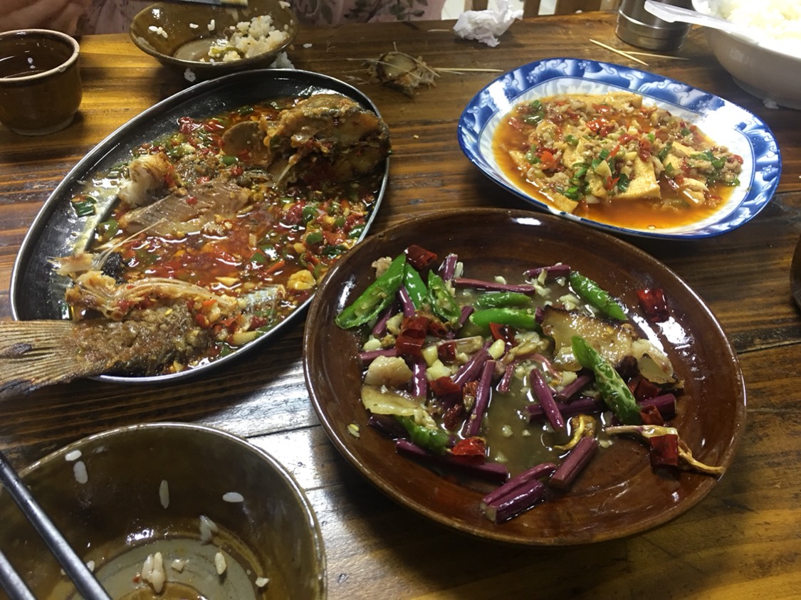 在堂安的中餐就是这边吃的,店里只有2个老板,都在厨房忙着,我们进店烧水泡茶全自助,服务是谈不上的,点了一个酸汤稻花鱼,野菜,炒肉,酸汤鱼的分量很多,不怎么符合胃口,野菜很好吃,没看出来是什么菜